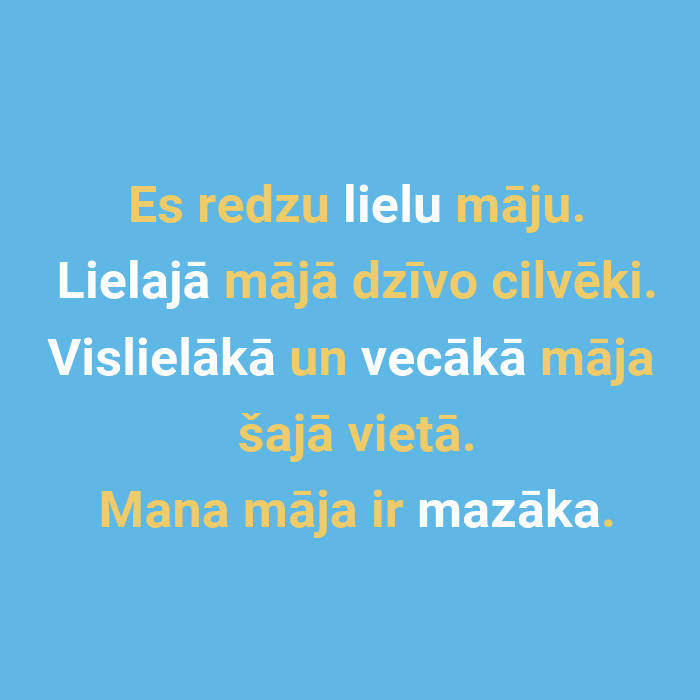 2) lielums vai izmērs (liels, neliels, mazs, vidējs);