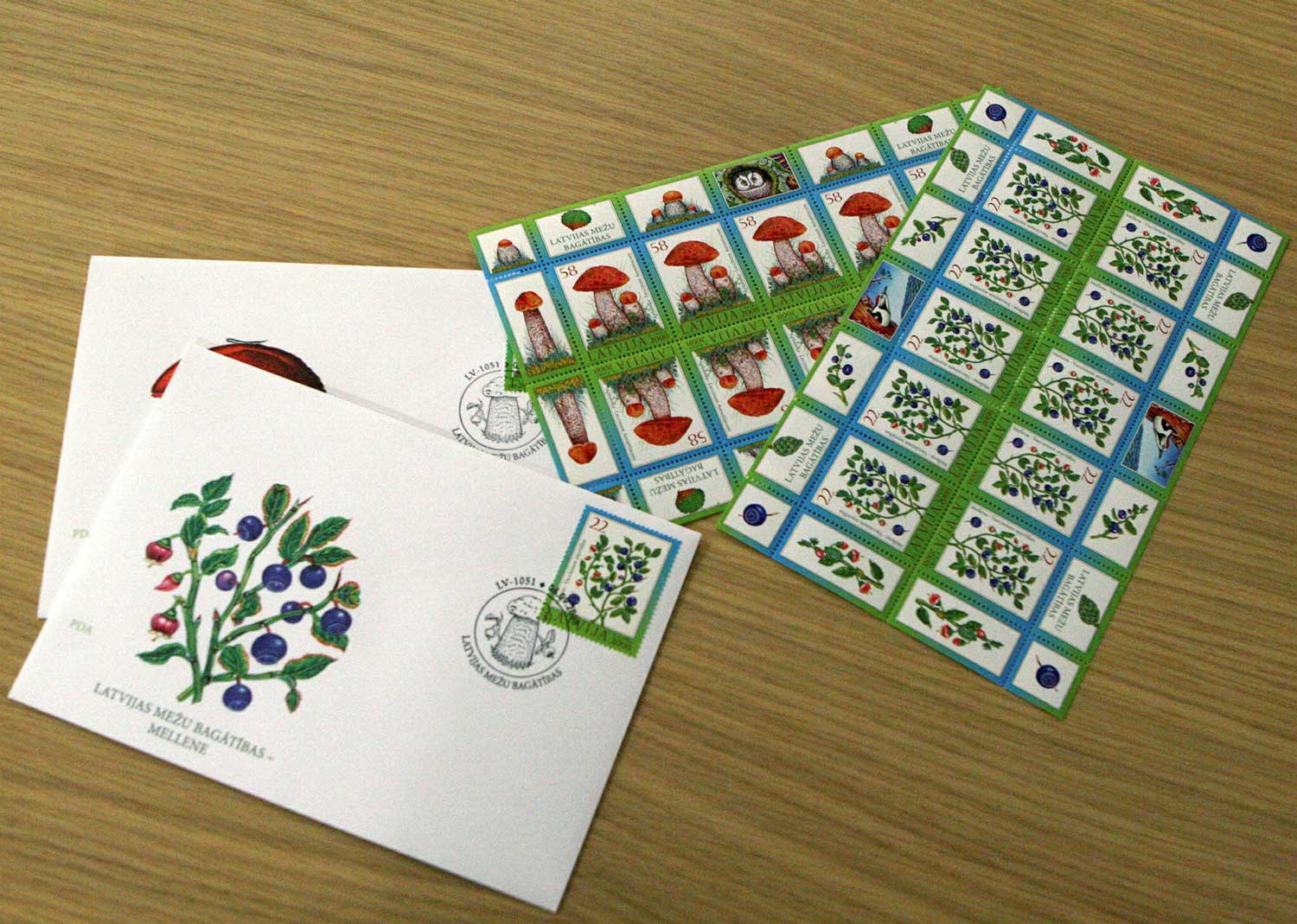 Pastmarkas “Mellene” un “Apšubeka” no sērijas “Latvijas mežu bagātības”. Rīga, 28.08.2011.