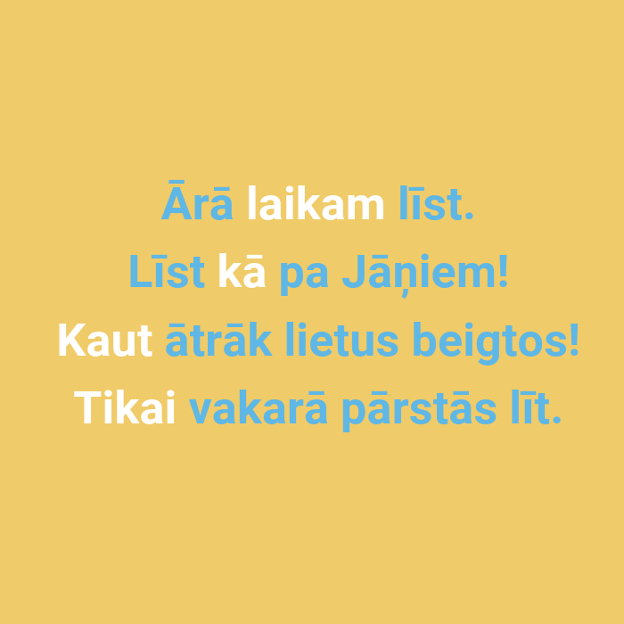 5)    vēlējumu – Kaut rīt nebūtu vēja!, Lai piepildās visas ieceres!;