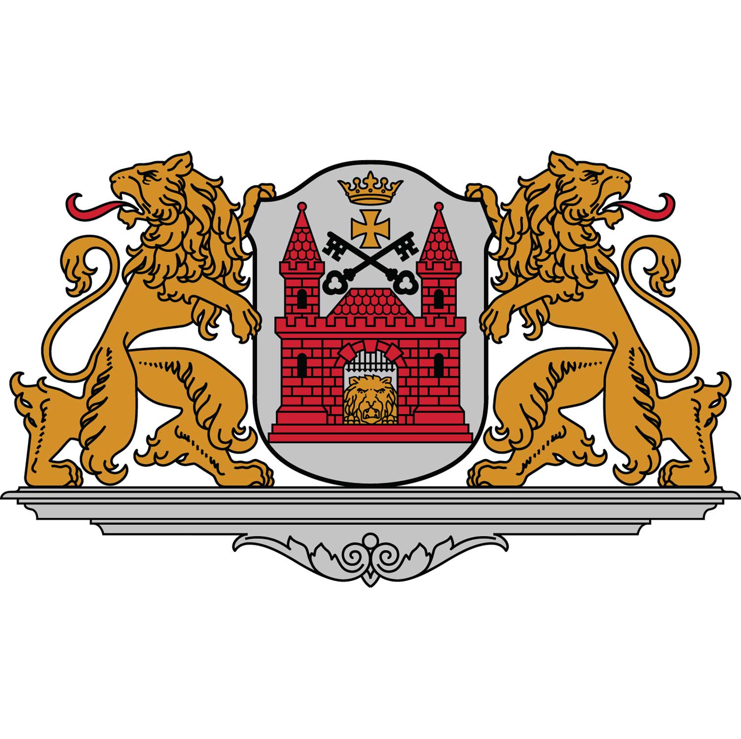 Pēc Vidzemes iekļaušanas Krievijas Impērijā izmaiņas skāra Rīgas ģerboņa vairoga turētājus. 18. gs. 20. gados pēc Rīgas rātes iniciatīvas lauvas tika nomainītas ar impērijas divgalvaino ērgli, kas heraldikas nosacījumu kļūdainas izpratnes dēļ bija atveidots kā ģerboņa figūra – pārdalīts un novietots aiz mūra vārtiem. Šāds atveidojums saglabājās arī 1788. gadā, kad ar Katrīnas II (Екатерина II) rīkojumu kopā ar citām pilsētām tika apstiprināts arī Rīgas ģerbonis. Saskaņā ar aprakstu tajā gaiši zilā laukā attēlots akmens mūris ar paceltiem dzelzs vārtiem, vārtos novietota kronēta lauvas galva, uz mūra divi torņi ar zelta karodziņiem galos, starp tiem krusta veidā saliktas divas melnas atslēgas, virs tām zelta krusts un kronis, bet abās pusēs sienai redzams Krievijas valsts ģerbonis. Zviedrijas karaļa kroni nomainīja Krievijas imperatora kronis, lai gan praksē plaši turpināja izmantot ģerboņa attēlojumus, kuros atveidotas senākā kroņa stilizācijas.
