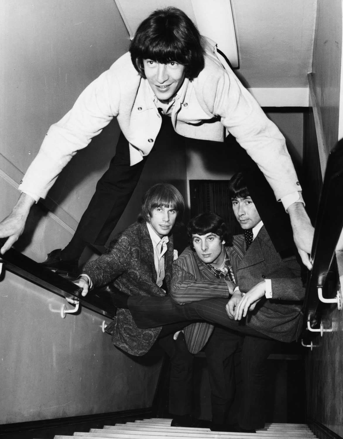 The Troggs. Ap 1967. gadu. Priekšplānā Ronijs Bonds (Ronnie Bond), aizmugurē no kreisās: Kriss Britons (Chris Britton), Pīts Steiplzs (Pete Staples) un Redžs Preslijs (Reg Presley).
