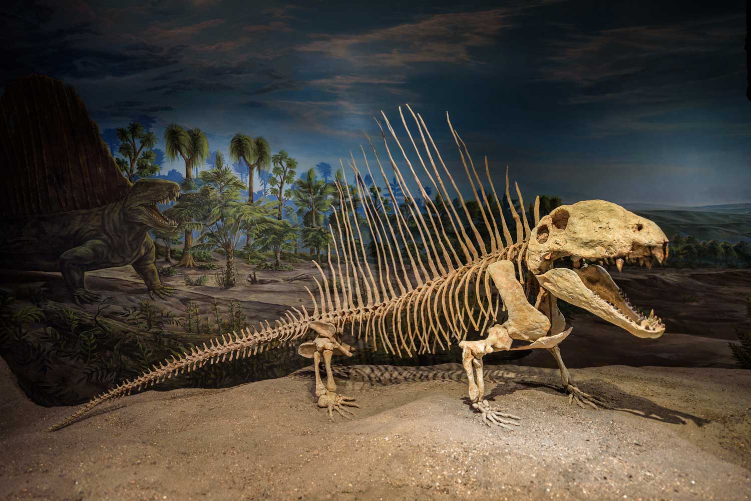 Sauszemes mugurkaulnieku atliekas arī sastopamas retāk, tikai vietām, galvenokārt tās atrod Rietumeiropā, Ziemeļamerikā, Dienvidāfrikā (Karū baseinā) un uz rietumiem no Urālu kalniem. Rāpuļi permā ieņēma to stāvokli, kas karbonā piederēja abiniekiem. Rāpuļi ar sauso ādu, ko klāja ragvielas zvīņas, vieglāk pārcieta sausumu; vairošanās ar olām, nevis nēršot ikrus, sekmēja rāpuļu izplatību. Agrā perma (Pieurālu epohas) sauszemes mugurkaulnieku faunā dominēja primitīvie sinapsīdi (grupa, kas apvieno zīdītājus un to rāpuļu senčus), kurus dažkārt neformāli dēvē par pelikozauriem: augēdāji edafozauri, plēsīgie sfenakodonti, diadekti, kā arī ne tik daudzveidīgie abinieki. Daži liela izmēra sinapsīdi (Dimetrodon) apguva ķermeņa temperatūras regulāciju, jo tiem bija muguras “bura” no mugurkaula skriemeļu augšējiem izaugumiem, ko klāja bieza āda ar daudziem asinsvadiem. Šāda bura ļāva ātrāk sasilt austošas Saules staros un paaugstināt vielmaiņas intensitāti, nodrošinot labākus medību apstākļus. Dienvidāfrikas un Krievijas vidējā perma (Gvadalupes epohas) faunā sāka dominēt primitīvie zvērrāpuļi, starp kuriem īpaši daudzveidīgi kļuva dinocefāli – grupa ar samērā īsu vēsturi, jo dinocefāli izmira Gvadalupes epohas beigās. Sinapsīdiem raksturīgi pēc funkcijām un morfoloģijas diferencēti zobi: plakani priekšzobi nokošanai, lieli un asi ilkņi upura nonāvēšanai un sānu zobi gaļas gabalu sakošļāšanai. Vēlajā permā (Lopingas epohā) progresēja zvērrāpuļi, starp tiem spēcīgie, plēsīgie liela auguma gorgonopši (Gorgonopsis, Inostrancevia).