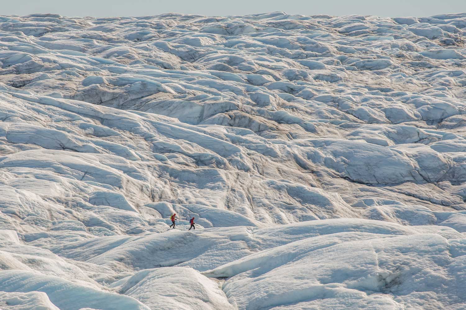 Svīnafelsjokula izvadledājs Islandē, 2017. gads. Ledājā esošās plaisas norāda uz trauslu ledus deformāciju, ko radījusi stiepes plūsma.