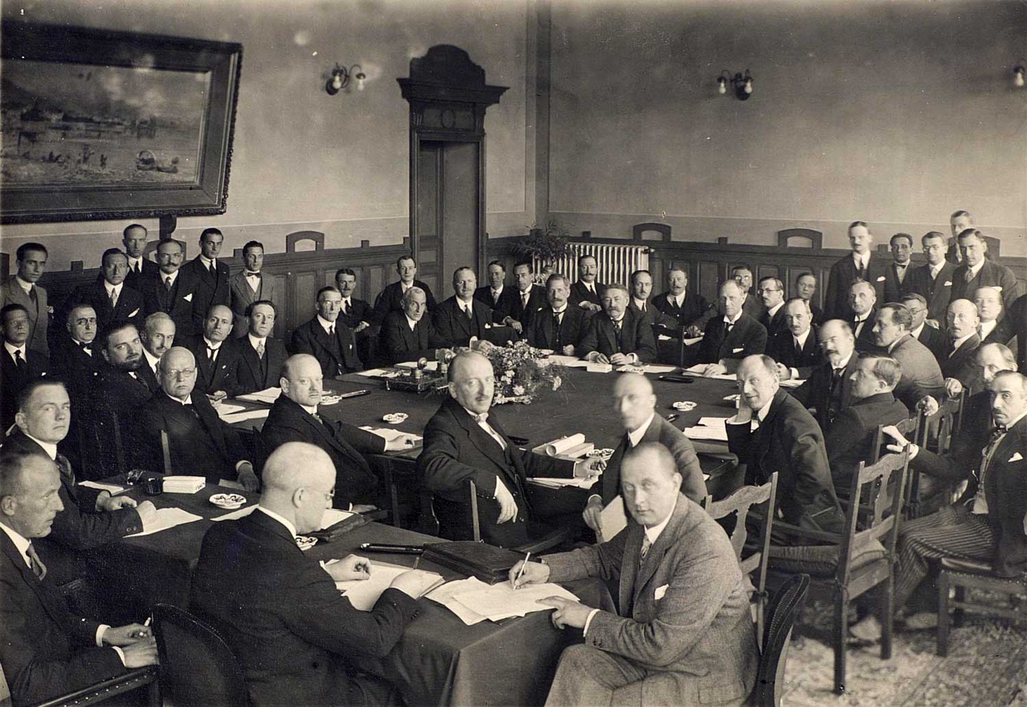 Lokarno līgumu izstrādes process Tiesu pilī Lokarno. Šveice, 16.10.1925.
