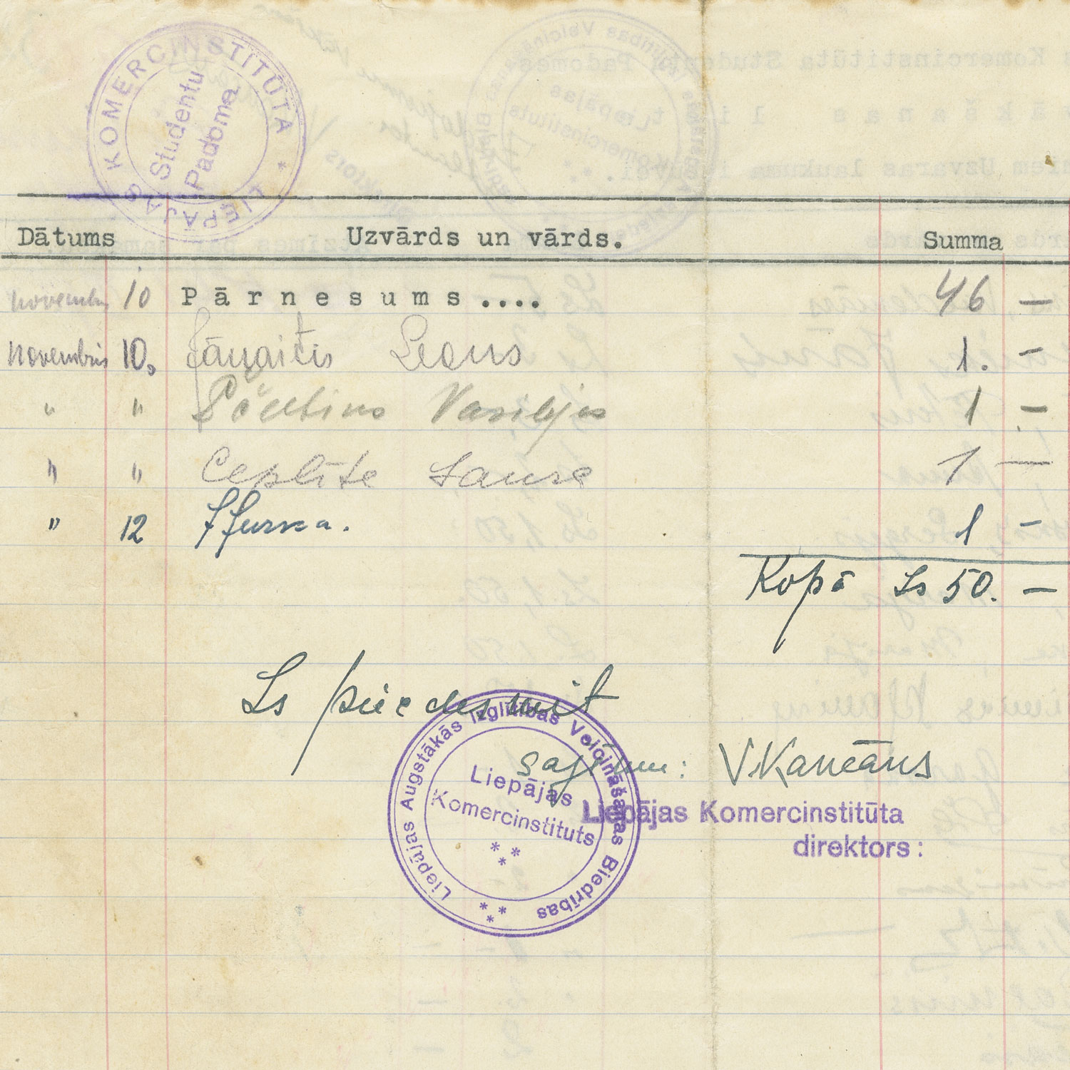 LKI galvenais iekšējās pārvaldes orgāns bija institūta padome. Tā atbildēja par komercinstitūta administratīvajiem, mācību organizācijas, audzēkņu uzņemšanas un saimniecības jautājumiem. Padomi vadīja Izglītības ministra apstiprināts komercinstitūta direktors.