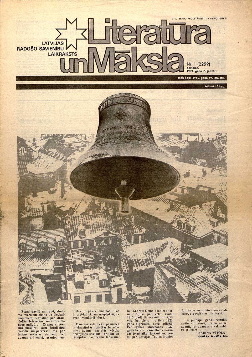 Laikraksts “Literatūra un Māksla” (1989. gads, Nr. 1)