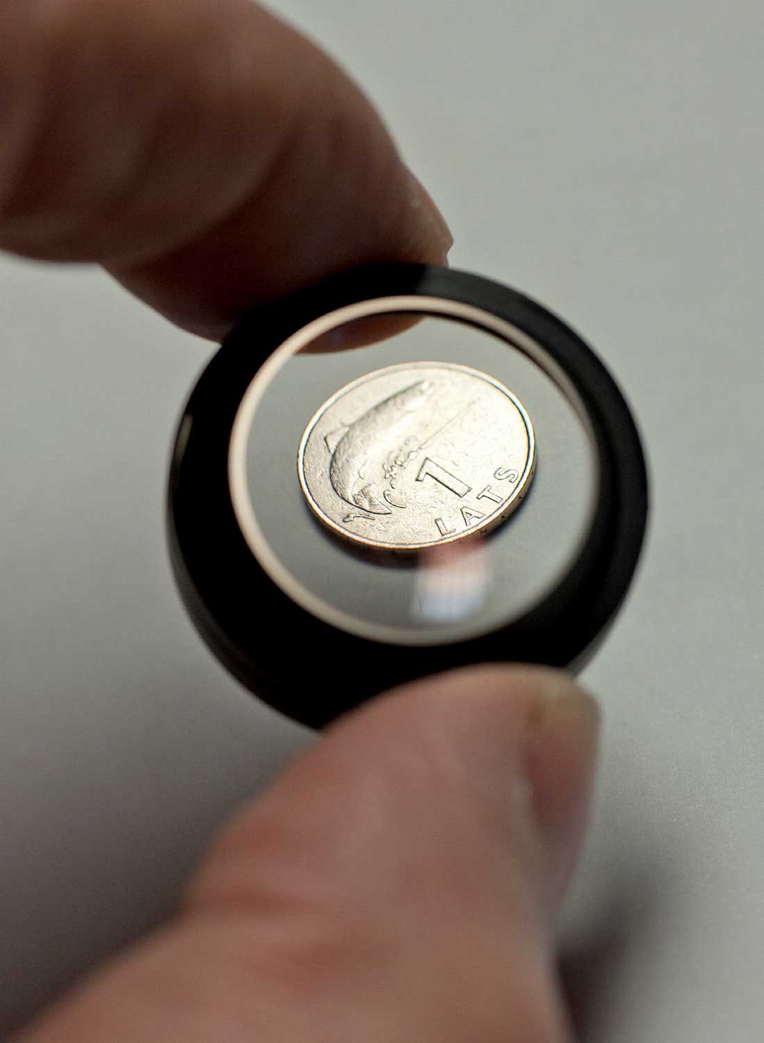 Latu monētu veidolam mākslinieks G. Lūsis izvēlējās latvisko dzīvesziņu apliecinošas vērtības: priedes stāds – meži, govs – zeme, lasis – ūdeņi, santīmu monētām – darba cēliena simbolu. Monētu aversā – valsts lielais vai mazais ģerbonis.
