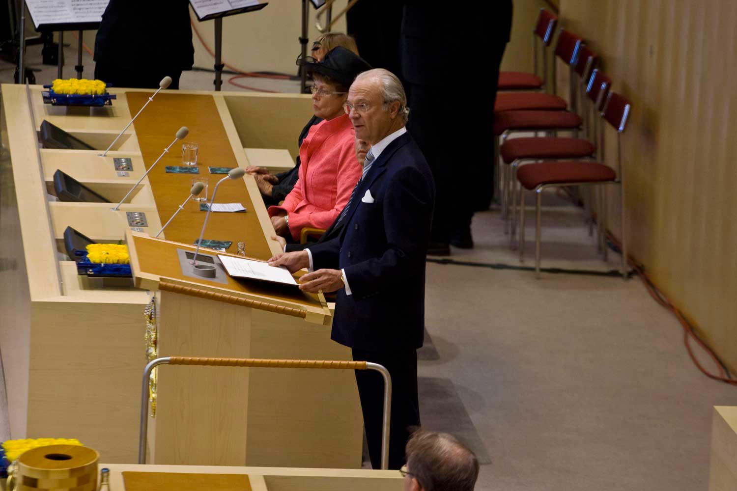 Zviedrijas karalis Kārlis XVI Gustavs uzrunā klātesošos jaunās parlamenta sesijas oficiālajā atklāšanā Riksdāgā. Stokholma, Zviedrija, 16.09.2008.