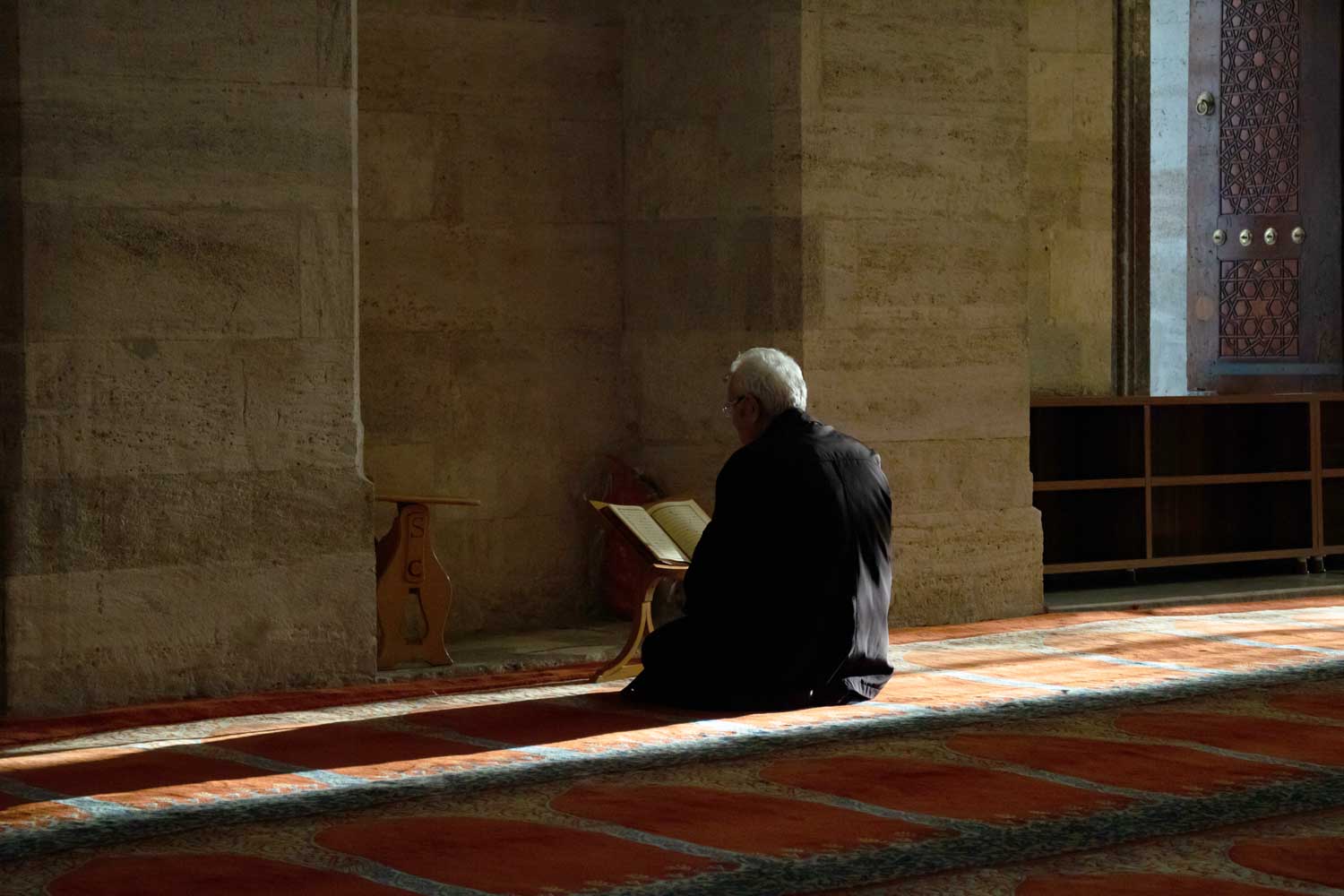 Musulmanis lasa Korānu mošejā Ramadāna laikā. Stambula, Turcija, 2017. gads.
