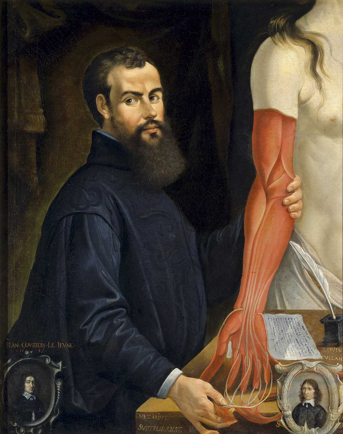 Andreass Vezālijs Pjēra Ponsē (Pierre Poncet) gleznā. 17. gs. Audekls, eļļa, 96 x 77 cm. Atrodas Orleānas tēlotājmākslas muzejā Francijā.