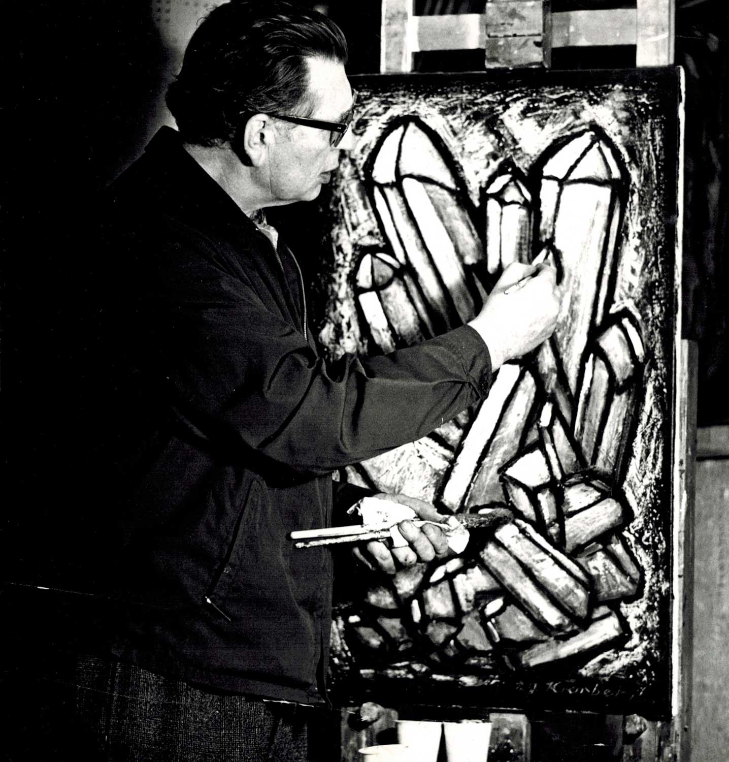 Rūdolfs Kronbergs strādā pie gleznas "Kalnu kristāls", 1968. gads.