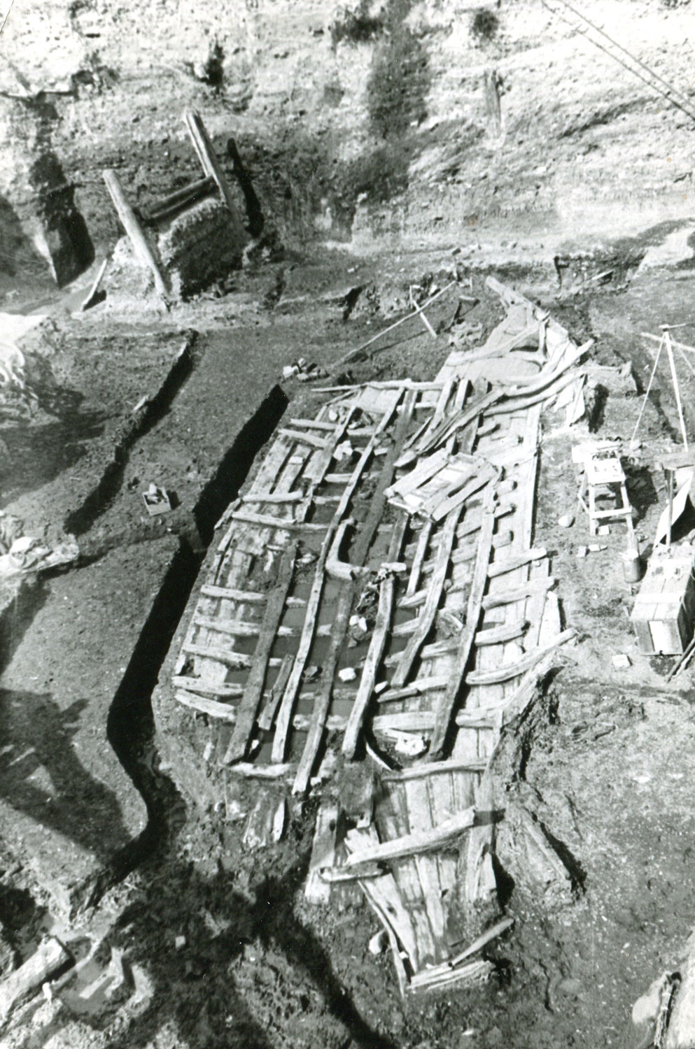 13. gs. sākuma kravas kuģa vraka jeb “Rīgas kuģa” izrakumi Vecrīgā. 1938.–1939. gads. Šie ir vienīgie līdz šim Latvijā veiktie zinātniskie kuģa vraka izrakumi. Izrakumu vadītājs Rauls Šnore.