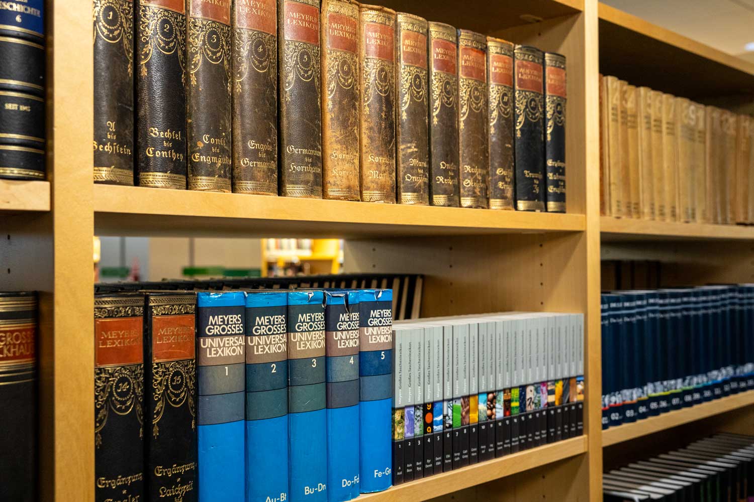 Vārdnīcu un enciklopēdiju sējumi Latvijas Nacionālās bibliotēkas Uzziņu un informācijas centra Jāņa Pāvila II lasītavā. Rīga, 04.02.2025.