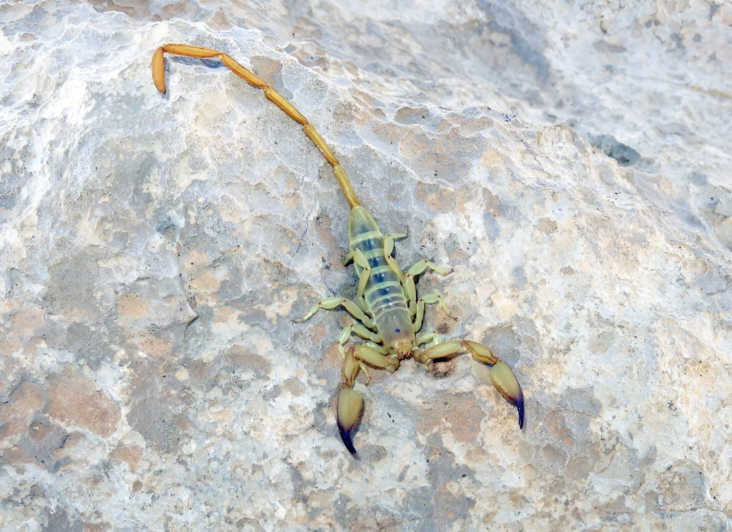 Iuridae dzimtas skorpioni dabā sastopami salīdzinoši reti. Pētījumu par šo grupu ir maz. Ļoti iespējams, ka to inde nav bīstama. Caraboctonidae dzimtas skorpionu inde nav medicīniski nozīmīga, tomēr dzēliens var būt sāpīgs. Hemiscorpius lepturus jeb Izraēlas dzeltenais skorpions (Hemiscorpiidae) ir atzīts par bīstamu sugu. Par citām dzimtas sugām datu nav. Visā pasaulē populāri mājdzīvnieki ir Scorpionidae dzimtas sugas Pandinus imperator (karaliskais skorpions) un Heterometrus spp. (milzu meža skorpions). Euscorpiidae, Iuridae, Hemiscorpiidae, Chatidae reti tiek turēti kā mājdzīvnieki. Bīstamākais skorpions ir Hemiscorpius lepturus, kas sastopams Jemenā, Irākā, Irānā un Pakistānā. Šī skorpiona indei nav pretindes.