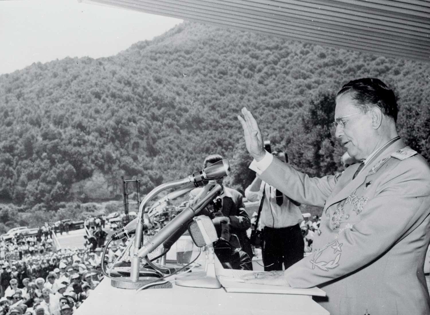 Josips Brozs Tito uzrunā pūli Dienvidslāvijas sacelšanās gadadienā. 04.07.1961.
