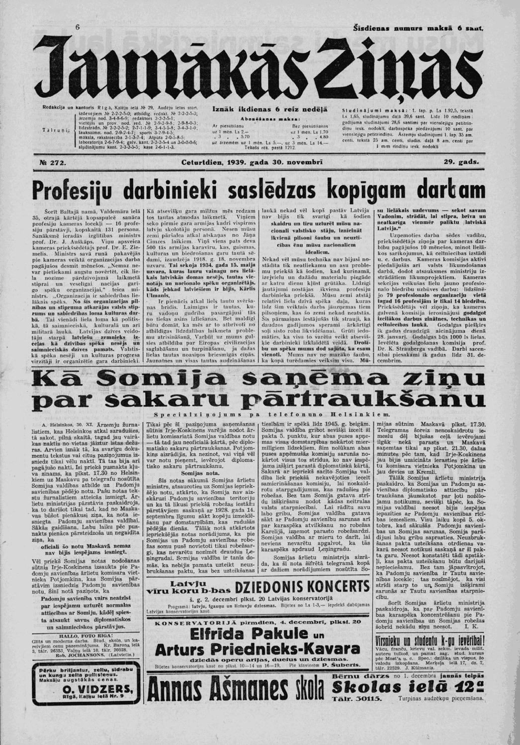 PSRS iebrukums Somijā, Ziemas karš, bija nozīmīgs militārs konflikts netālu no Latvijas robežām. Latvijas valdības atturīgā nostāja un rīcība, kas nenosodīja padomju pusi, nespēja nodrošināt Latvijai labvēlīgākus apstākļus PSRS iebrukuma draudu apstākļos Baltijā. Savukārt Latvijas sabiedrības un militārpersonu nostāja, neraugoties uz apstākļiem, ko noteica autoritārisms un līdz ar to ierobežota izpausmes brīvība, skaidri demonstrēja simpātijas Ziemas kara upurim – Somijai.