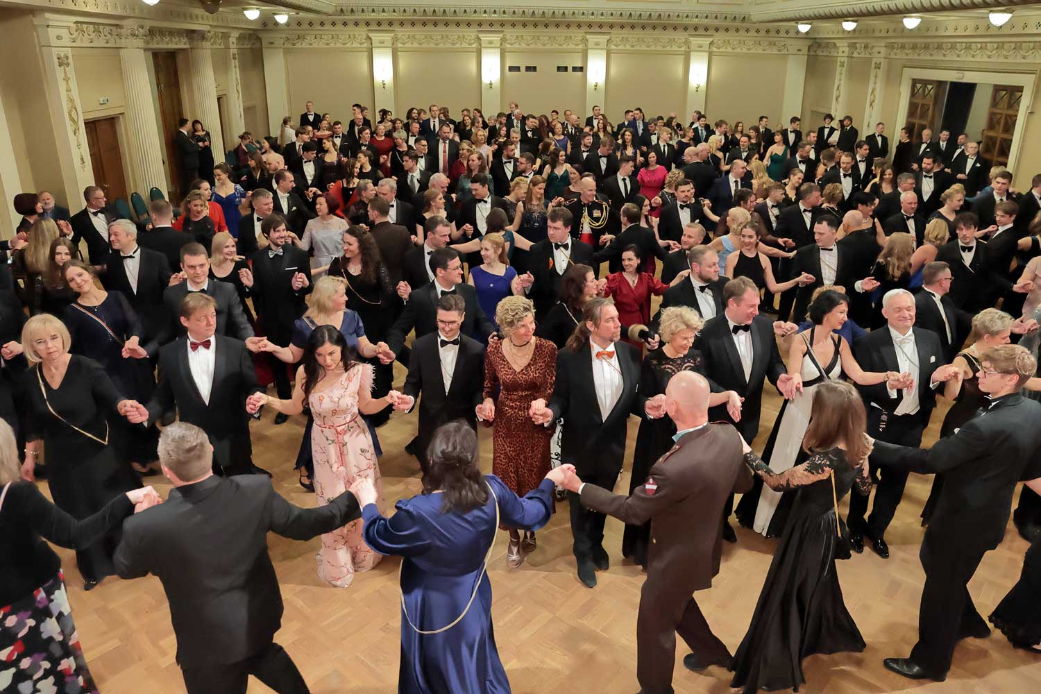 Balles norisinās saskaņā ar tradicionālu programmu. Viesus ar dzirkstošā vīna glāzēm sveicina organizējošo studentu korporāciju vadītāji ar dāmām. Pasākums sākas ar runām, no kurām pirmo saka viens no organizējošo studentu korporāciju senioriem. Tai seko Valsts prezidenta uzruna, bet viņa prombūtnes gadījumā tiek nolasīts rakstisks apsveikums. Pēc tam savu runu saka Nacionālo bruņoto spēku komandieris un noslēgumā – dažreiz arī Rīgas Latviešu biedrības pārstāvis. Runām seko polonēze, pēc kuras viesi ir aicināti pie t. s. zviedru galda. Pēc furšeta notiek dejas tūres un brīžos starp tām – muzikāli priekšnesumi, mākslas darbu labdarības izsoles un citi notikumi (piemēram, Latvijas armijas vēsturisko formastērpu demonstrēšana, kas norisinājās pirmajā atjaunotajā ballē 2003. gadā). Pusnaktī balles oficiālo daļu noslēdz ar studentu himnu Gaudeamus igitur un dziesmas “Trimpula” dziedāšanu, kam seko organizatoru aicinājums uz torti. Balle noslēdzas ar pēdējo deju tūri un pēcpasākumu, kas notiek vienas no organizējošo korporāciju telpās.