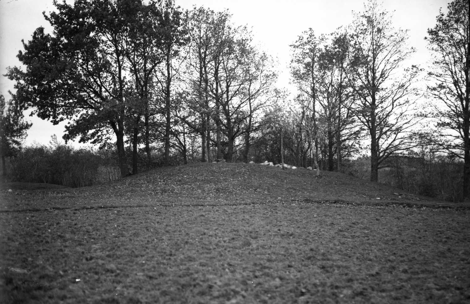 Uzkalniņš apaudzis ar krūmiem un kokiem, redzamas senu rakumu pēdas.