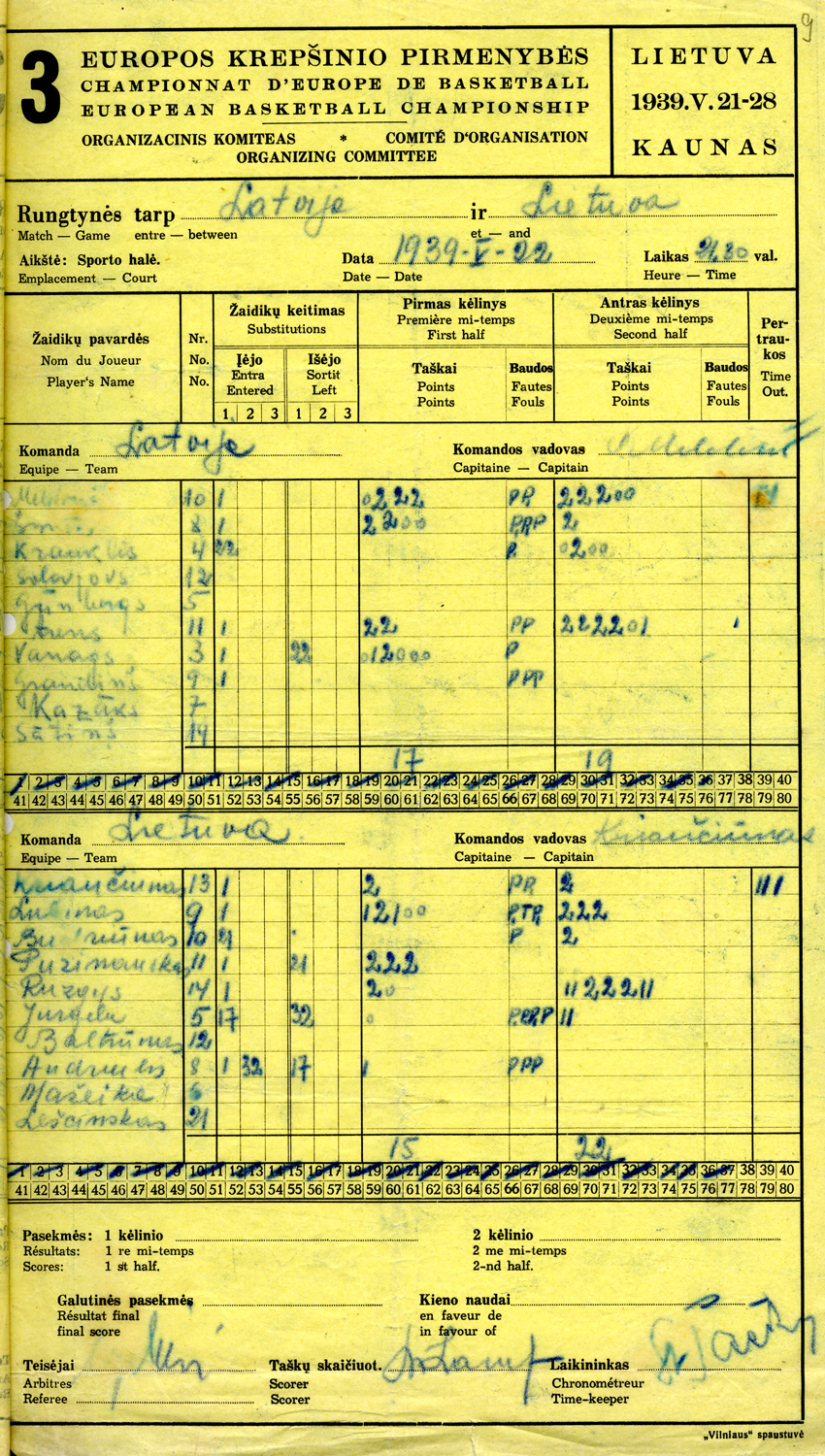 Tehniskās komitejas sēdē 20.05.1939. tika sniegta atļauja piedalīties turnīrā visiem pieteiktajiem Lietuvas izlases spēlētājiem, kuri bija ieradušies no Amerikas Savienotajām Valstīm (ASV), tostarp Pranam Lubinam (angļu Frank Lubin, lietuviešu Pranas Lubinas), kurš 1936. gadā bija kļuvis par olimpisko čempionu ASV basketbola izlases sastāvā. Komiteja arī atzina, ka nav pierādījumu par amatierisma principu pārkāpumiem attiecīgo spēlētāju darbībā.
