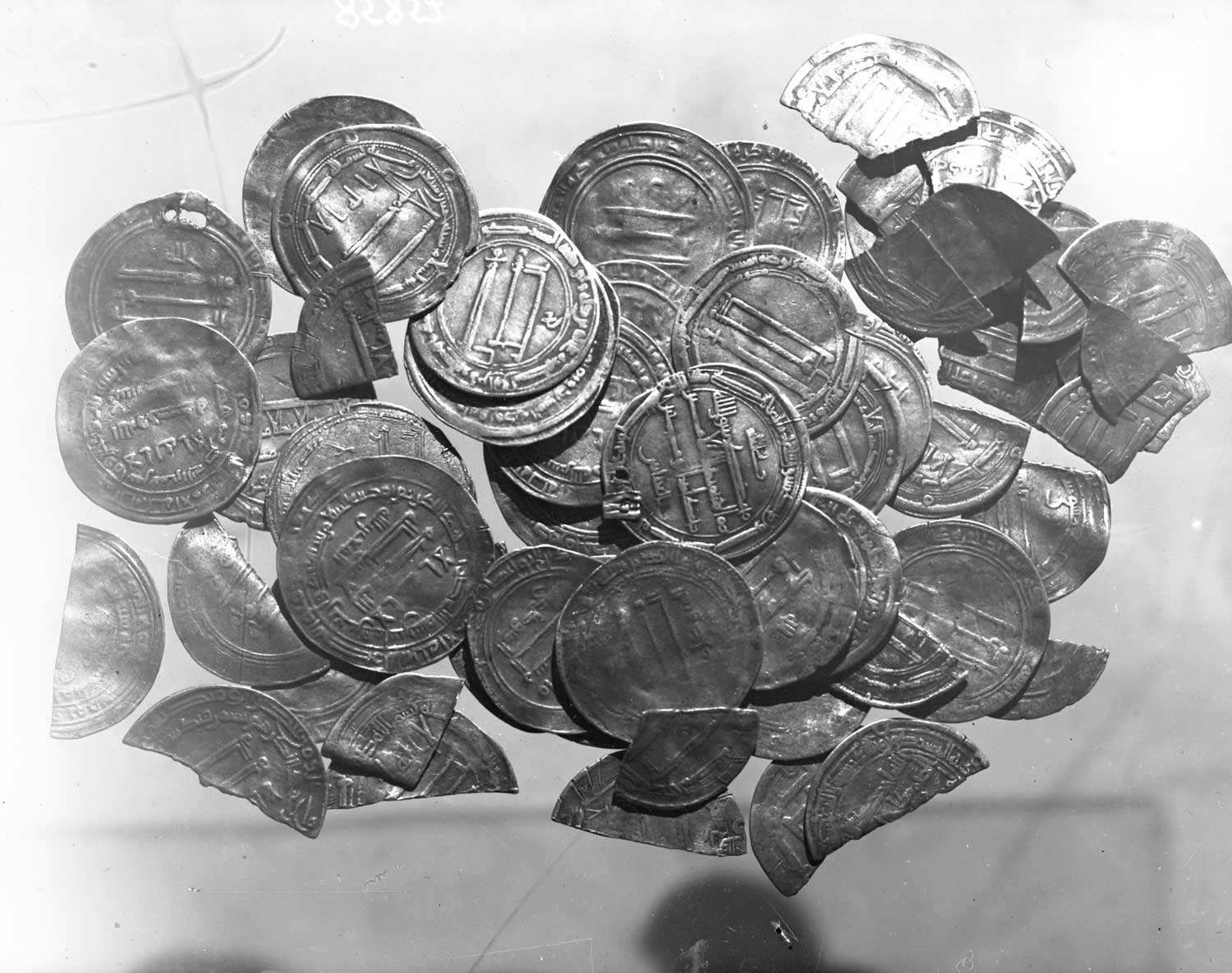 Arābu dirhēmi, atrasti Sāraju senkapos Talsu apriņķa Lībagu pagastā. 1930. gads.