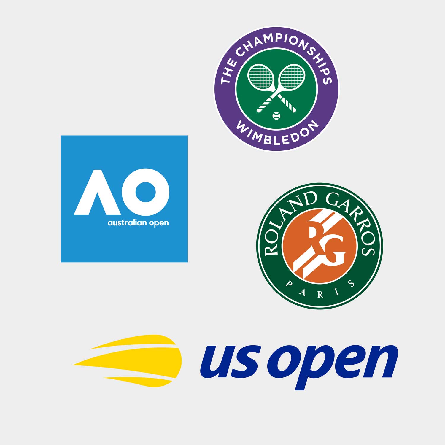 Četru nozīmīgāko Grand Slam tenisa turnīru – Australian Open, French Open, Vimbldonas un US Open, logo.
