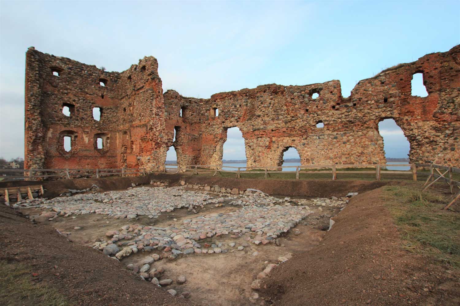 Spriežot pēc arhitektūras formām un agrākajiem monētu atradumiem (kaltas laikā no 14. gs. beigām līdz 1422.–1426. gadam; izrakumi Jolantas Daigas vadībā), mūra pils šajā vietā tika uzcelta tikai 14. gs.
