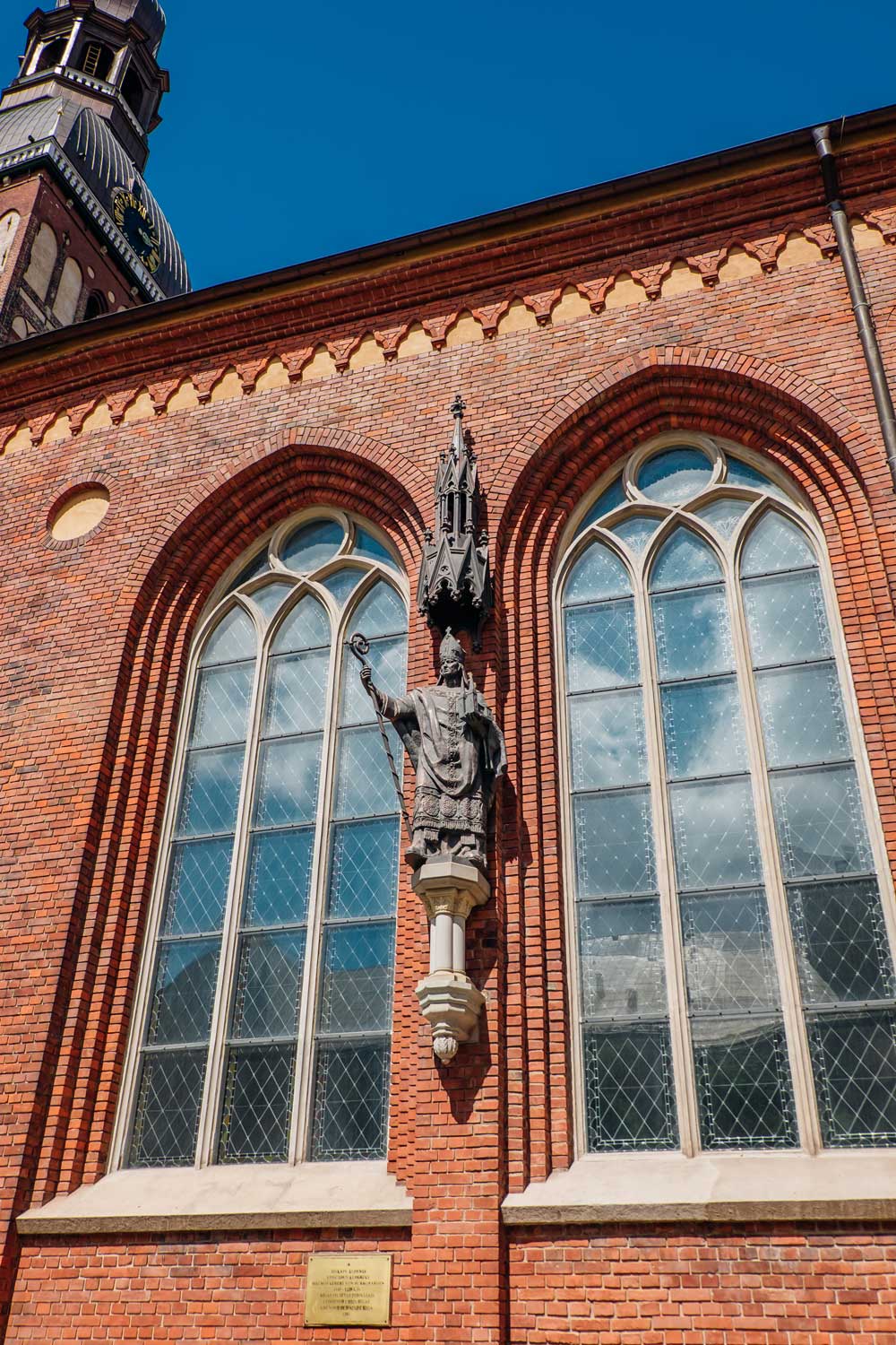 Bīskapa Alberta skulptūra pie Doma baznīcas sienas. Rīga, 17.07.2017.