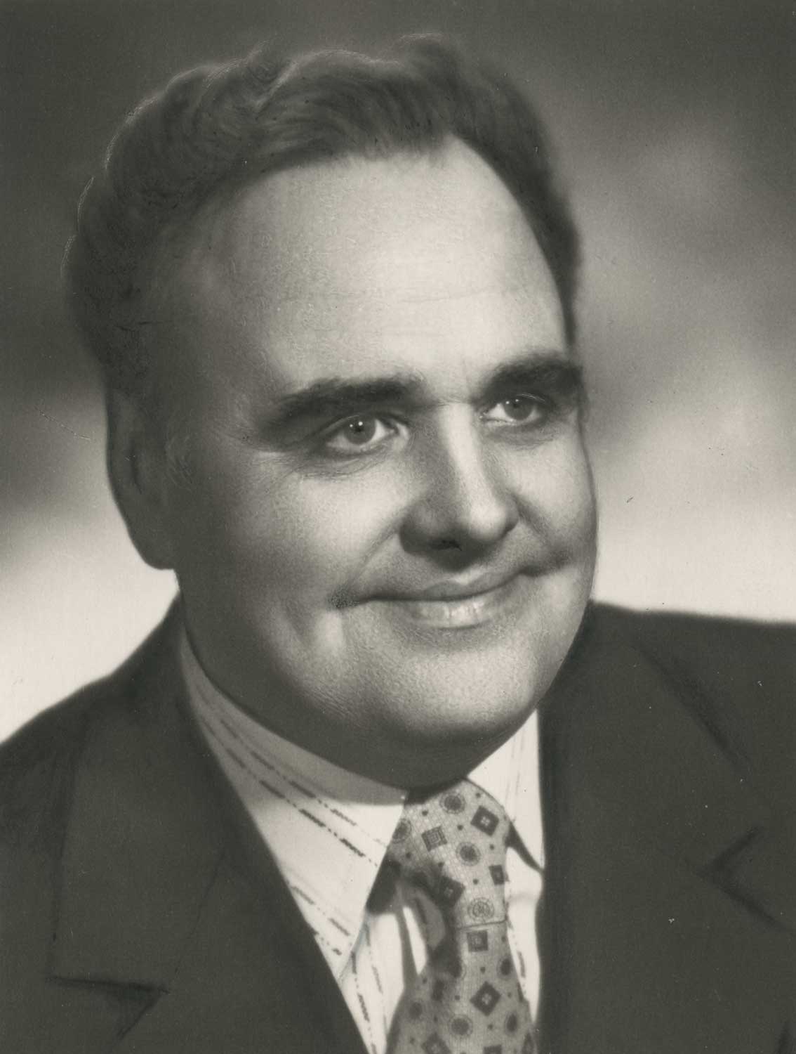 No kreisās: Gunārs Placēns Stepana lomā, Imants Adermanis Borisa lomā un Rasma Roga Veronikas lomā izrādē “Mūžam dzīvie”. Raiņa Dailes teātris, 1956. gads.