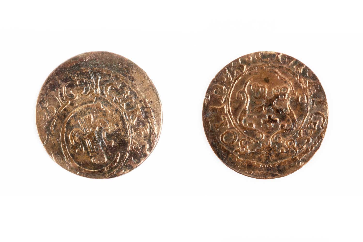 Šiliņš, kalts Sučavā kā Polijas-Lietuvas kopvalsts valdnieka Jana II Kazimira Lietuvas sudraba šiliņa viltojums bez gadskaitļa. Averss un reverss.