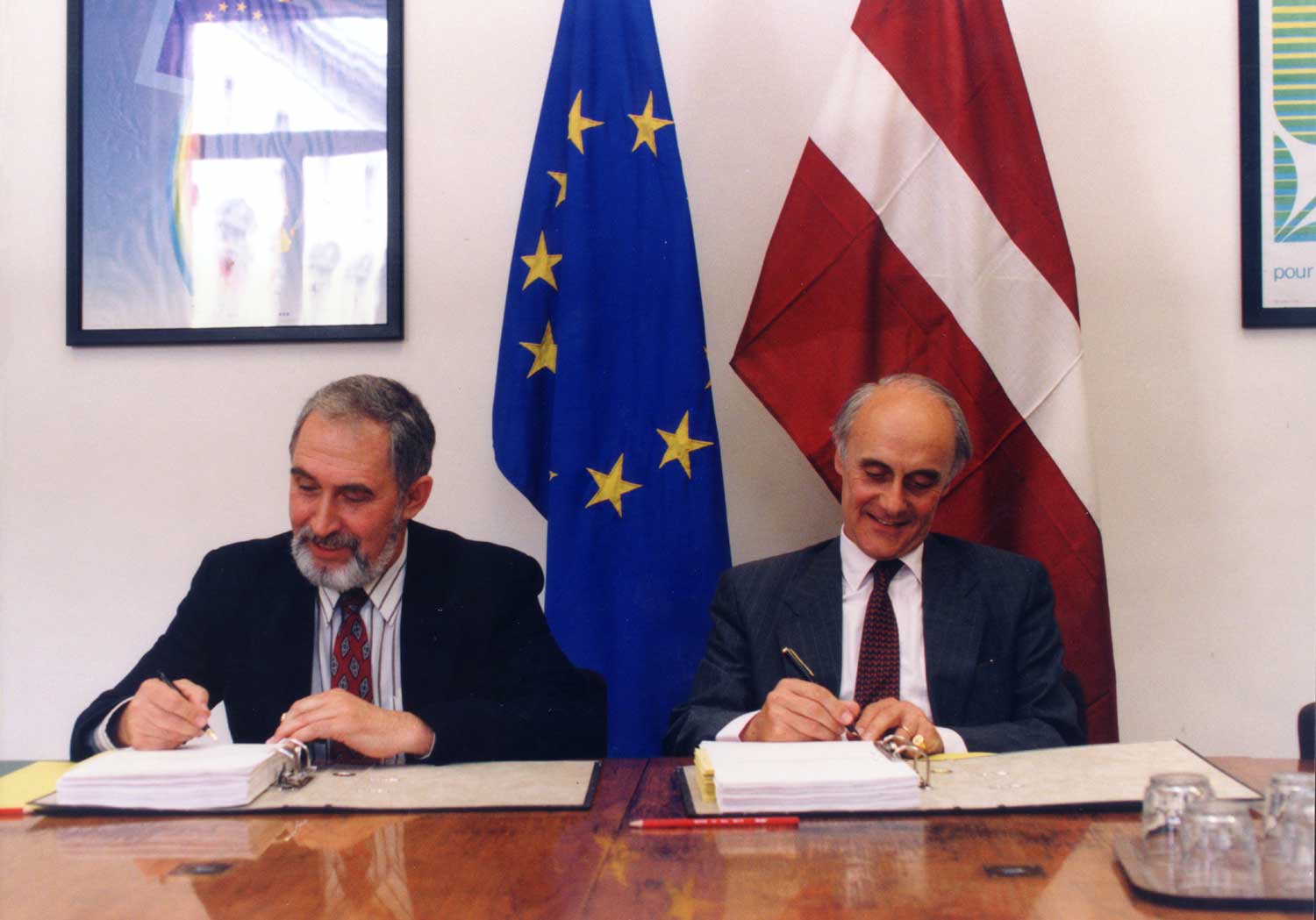 Lai arī Eiropas Parlaments pirmo politisko rezolūciju par atbalstu Igaunijas, Latvijas un Lietuvas neatkarībai pieņēma jau 13.01.1983., Baltijas valstu ceļš uz dalību ES sākotnēji Rietumvalstīs un Eiropas institūcijās tika uztverts atturīgi. 27.08.1991. EK atzina Baltijas valstu neatkarību. 28.01.1992. tika nodibinātas diplomātiskās attiecības starp LR un Eiropas Kopienām. 11.05.1992. Latvija un Eiropas Ekonomiskā kopiena (EEK) noslēdza Līgumu par tirdzniecību un komerciālo un ekonomisko sadarbību, vēlāk to aizstāja 18.07.1994. parakstītais Līgums par brīvo tirdzniecību. Šie līgumi bija vērsti uz tirgus atvēršanu, pakāpenisku ievedmuitas atcelšanu un brīvās tirdzniecības plūsmu nodrošināšanu starp Latviju un EKK, taču tajos nebija iekļauta apņemšanās virzīties uz nākamo attiecību stadiju – asociācijas izveidošanu ar EEK. 06.1993. Eiropadome apstiprināja prasības (t. s. Kopenhāgenas kritērijus) jaunajām kandidātvalstīm, lai tās varētu iestāties ES. 12.1994. Eiropadome apstiprināja jauno kandidātvalstu pirmsiestāšanās stratēģiju. 07.04.1995. Saeima pieņēma Latvijas Republikas ārpolitikas koncepciju un definēja prioritātes – integrācija ES un Ziemeļatlantijas līguma organizācijā (North Atlantic Treaty Organization, NATO). 12.06.1995. Latvija un ES parakstīja Eiropas Asociācijas līgumu, kas stājās spēkā 02.1998. Eiropadome 06.1995. pieņēma “Balto grāmatu” (White Paper) likumdošanas saskaņošanai, nosakot pamatpasākumus ES kandidātvalstīm visās iekšējā tirgus nozarēs un secību, kādā veicama likumdošanas tuvināšana ES likumdošanai. Tas veidoja pamatu likumdošanas salīdzināšanai, izvērtēšanai un pielāgošanai ES likumdošanas kopumam (acquis), 31 sarunu sadaļas atvēršanai un noslēgšanai, kā arī sarunām par nepieciešamajiem pārejas periodiem. 13.10.1995. tika parakstīts pieteikums par Latvijas uzņemšanu ES. 12.1995. Eiropadome uzdeva Eiropas Komisijai sagatavot atzinumus par visām jaunajām kandidātvalstīm, t. sk. Latviju, un to atbilstību uzņemšanas kritērijiem.