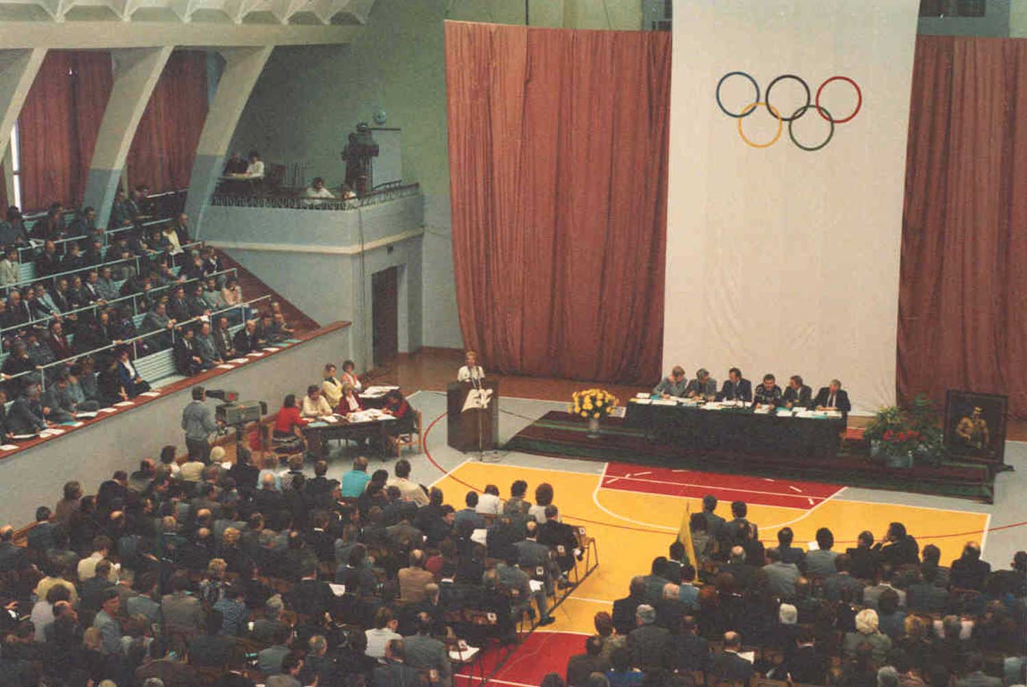 Latvijas Olimpiskās komitejas atjaunošanas konference Rīgā, Daugavas Sporta namā. 19.11.1988.