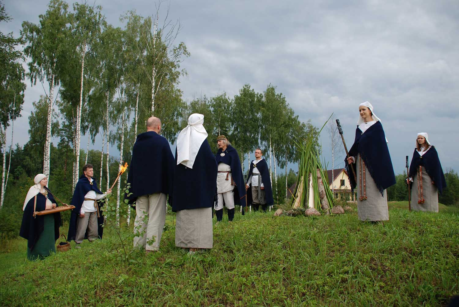 Jauno saviešu uzņemšanas rituāls Latvijas Dievturu sadraudzē. Vada Valdis Celms. Limbažu novads, atpūtas komplekss “Meža salas”, 08.2011.