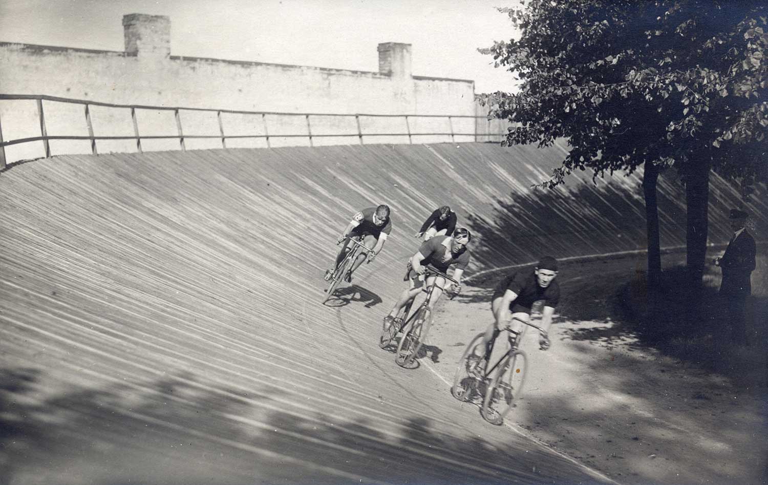 Gatavošanās sacensībām sporta biedrības "Marss" velotrekā Rīgā. 20. gs. 30. gadi.
