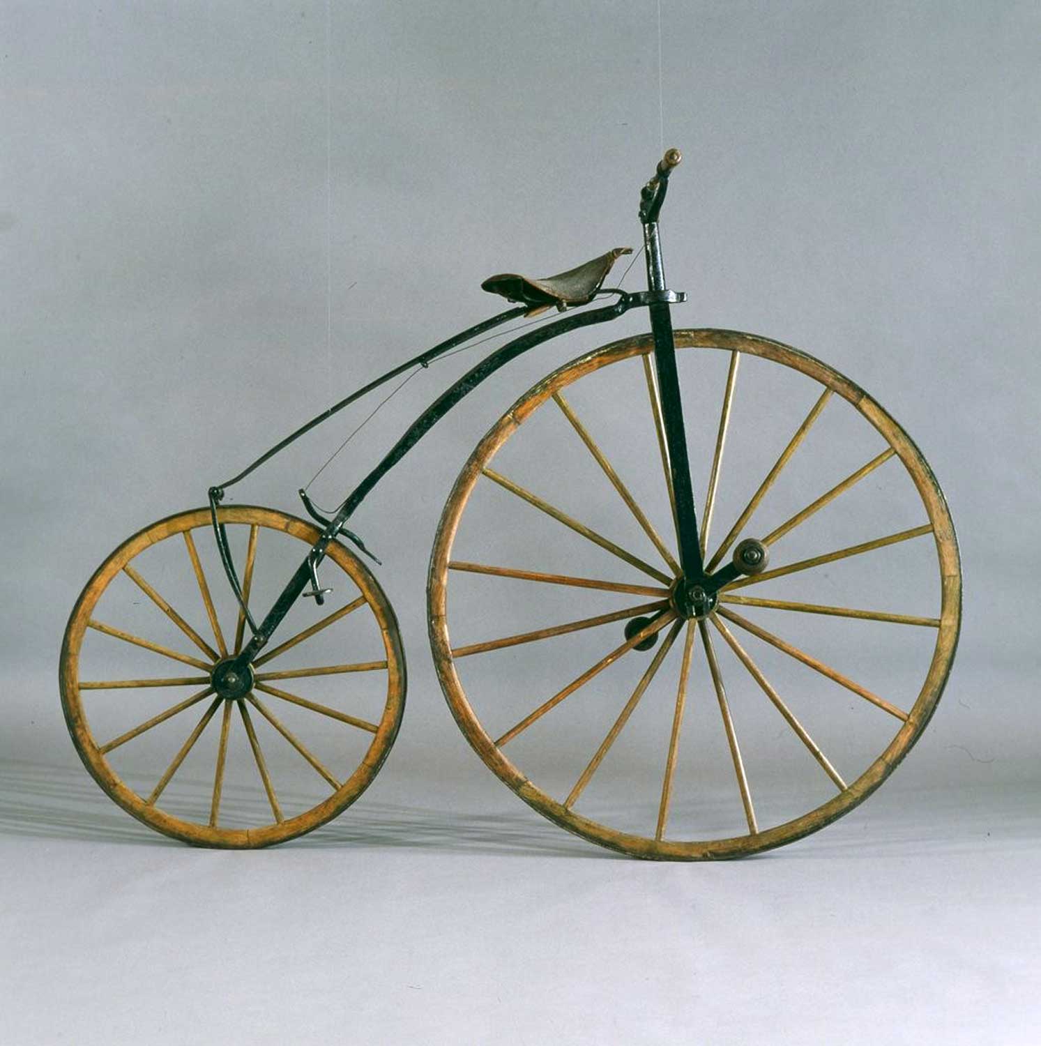 Velosipēda agrīnā vēsture ir sarežģīta un apvīta ar zināmu noslēpumainību arī tāpēc, ka patentu prasības bija ļoti pretrunīgas. Zinātniskais konsensus ir šāds: 1862. gadā jauns bērnu ratiņu mehāniķis P. Lalmāns no Nansī, Francijā, pievienoja drezīnai transmisiju, kas sastāvēja no rotējoša kloķa mehānisma un pedāļiem, kas piestiprināti pie priekšējā riteņa rumbas, tādējādi radot pirmo īsto velosipēdu.