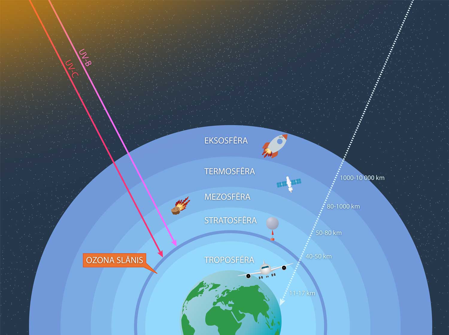 20. gs. 70. gadu vidū tika atklāts, ka cilvēka radītās ķīmiskās vielas (piemēram, hlorfluorogļūdeņraži, bromfluorogļūdeņraži, haloni, oglekļa tetrahlorīds, metilbromīds) var izraisīt Zemes aizsargājošā ozona slāņa iznīcināšanu. Visizteiktākā ozona slāņa samazināšanās ir novērojama Zemes polu rajonos, īpaši virs Antarktīdas. Ozona caurumu novietojumam virs poliem ir vairāki iemesli, kas ir saistīti ar īpašiem atmosfēras un klimatiskajiem apstākļiem šajos reģionos – polārajiem virpuļiem (polar vortex) un polārajiem stratosfēras mākoņiem. Polārie virpuļi ir liela mēroga atmosfēras cirkulācijas, kas veidojas virs Zemes poliem un būtiski ietekmē polāro reģionu klimatu un laikapstākļus. Šie spēcīgie vēji apņem polāros reģionus un darbojas kā barjera, kurā gaiss tiek ieslēgts, neļaujot siltākajām, ozonu saturošajām gaisa masām no citiem platuma grādiem sajaukties ar aukstajām polārajām gaisa masām. Polārie virpuļi veidojas augšējos atmosfēras slāņos, galvenokārt stratosfērā, bet tie var ietekmēt arī troposfēru. Polāro virpuļu zemā temperatūra veicina polāro stratosfēras mākoņu veidošanos, kas ir būtiski ozona noārdīšanās procesā. Antarktīdas klimats un ģeogrāfiskie apstākļi veicina aukstāku un stabilāku polāro virpuli nekā Arktikā. Arktikas polārais virpulis ir mazāk stabils un biežāk sadalās, ļaujot siltākam gaisam sajaukties ar polāro gaisu, kas mazina ozona cauruma veidošanās intensitāti šajā reģionā. Polārajos virpuļos temperatūra pazeminās līdz pat –85 °C. Šādos apstākļos atmosfērā esošie slāpekļa oksīdi, reaģējot ar ledus kristāliem, pārvēršas par slāpekļskābi. Tās molekulas kalpo par ūdens tvaiku kondensācijas centriem. Polārajos stratosfēras mākoņos notiek reakcijas, kurās neaktīvās hlora un broma savienojumu formas (piemēram, hlorfluorogļūdeņražus, HCl un ClONO2) pārvēršas aktīvās formās (piemēram, Cl2 un HOCl), kas tālākās reakcijās izraisa ozona slāņa noārdīšanos. Iestājoties polārajai dienai, Saules emitētā UV gaisma sadala Cl2 molekulas, atbrīvojot hlora atomus. Atbrīvotie hlora atomi ir ļoti reaģētspējīgi un spēj noārdīt ozona molekulas. Hloram reaģējot ar ozonu, veidojas hlora monoksīds (ClO) un skābekļa molekula (O2). Divas ClO molekulas var reaģēt savā starpā, veidojot Cl2O2, kas saules gaismas ietekmē sadalās atpakaļ hlora atomos, kuri turpina reaģēt ar ozonu. Šīs reakcijas var noārdīt tūkstošiem ozona molekulu, turpinoties cikliskā veidā. Šie procesi veicina ikgadējā ozona cauruma veidošanos, īpaši virs Antarktīdas, kur polārie stratosfēras mākoņi ir visizteiktākie un noturīgākie. Katru gadu pavasarī (septembrī un oktobrī Antarktīdā) notiek intensīva ozona slāņa noārdīšanās, izveidojas liels ozona caurums. Ozona caurums tehniski nav “caurums”, kurā ozona vispār nav, bet gan ozona slāņa reģions stratosfērā, kur ozona koncentrācija ir samazināta. Polāro stratosfēras mākoņu veidošanās ir kritiska ozona noārdīšanās procesā, jo tie nodrošina virsmu ķīmiskajām reakcijām, kas pārveido neaktīvos ozona noārdošos savienojumus aktīvās formās, kas spēj noārdīt ozona molekulas polārajos reģionos, īpaši Antarktīdā.