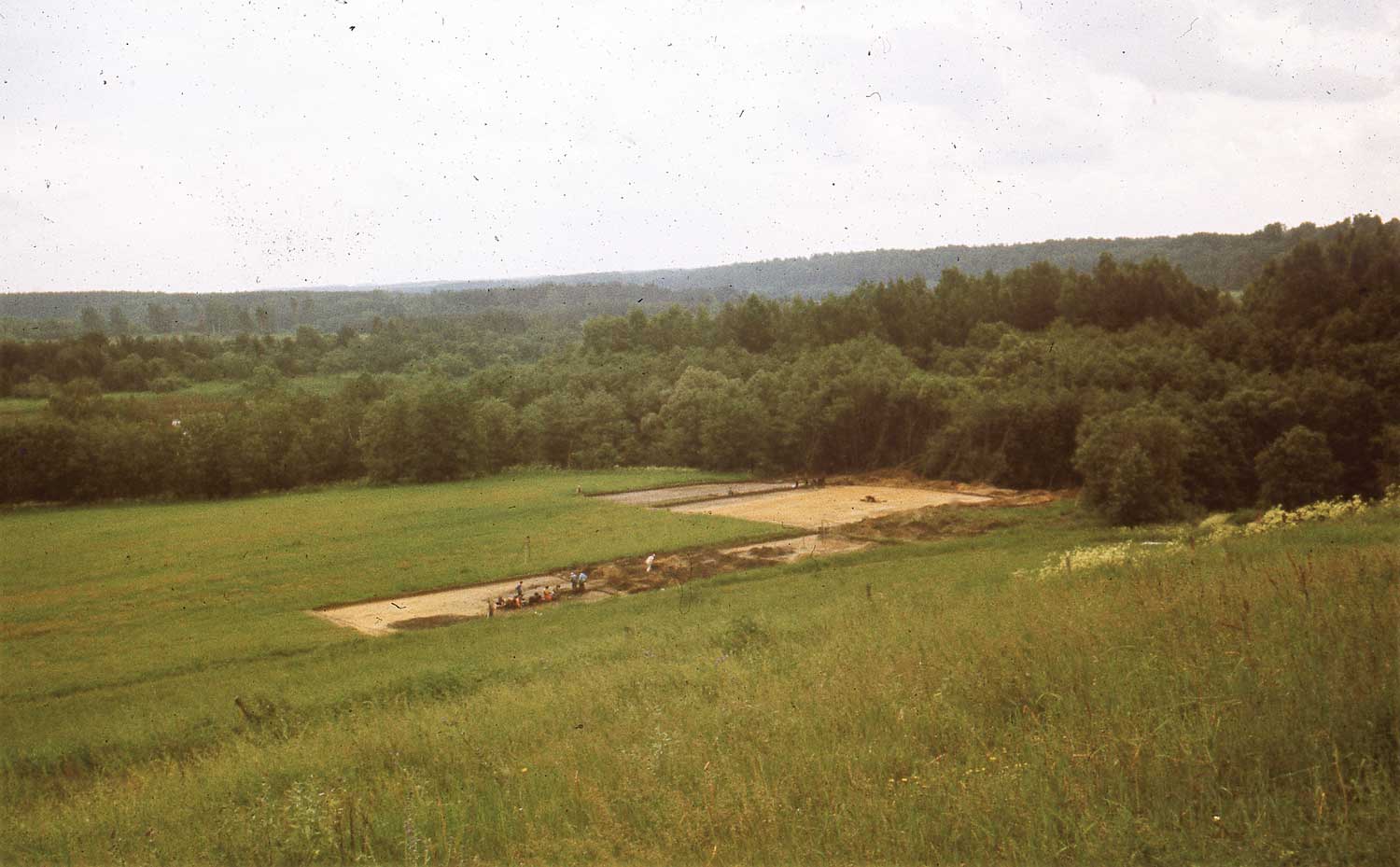 Kerkūzu I apmetnes pirmais celtņu rajons un palisādes vietas tumšā josla. 1986. gads.
