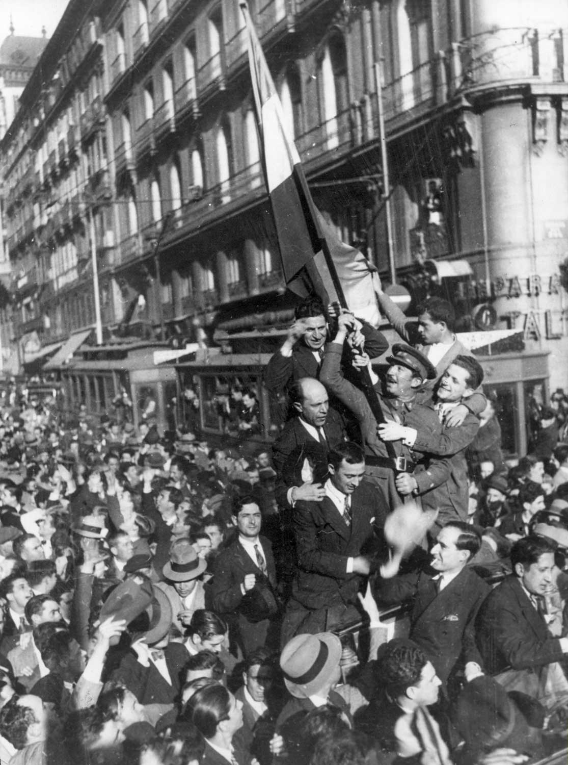 Republikas proklamēšana no Madrides rātsnama balkona pēc pašvaldību vēlēšanām, kurās uzvarēja republikāņi, un karaļa Alfonso XIII atkāpšanās. 14.04.1931.
