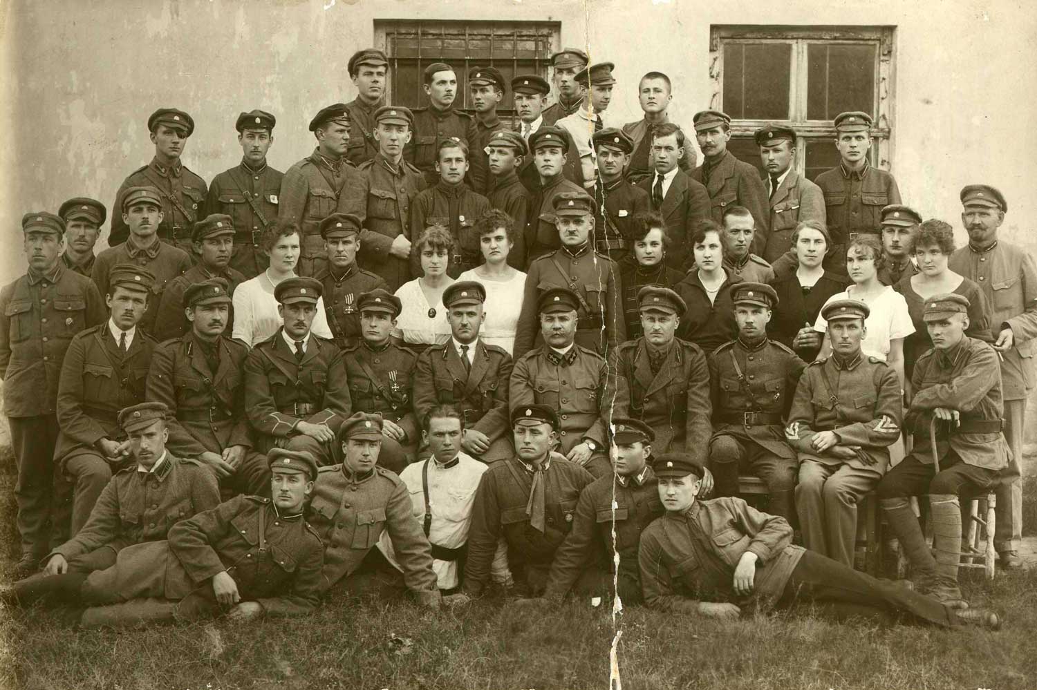 Robežsargi Ludzas apriņķī Reiķu kordonā. Otrajā rindā 4. no kreisās – pulkvedis leitnants Jānis Auniņš. 1921. gads.