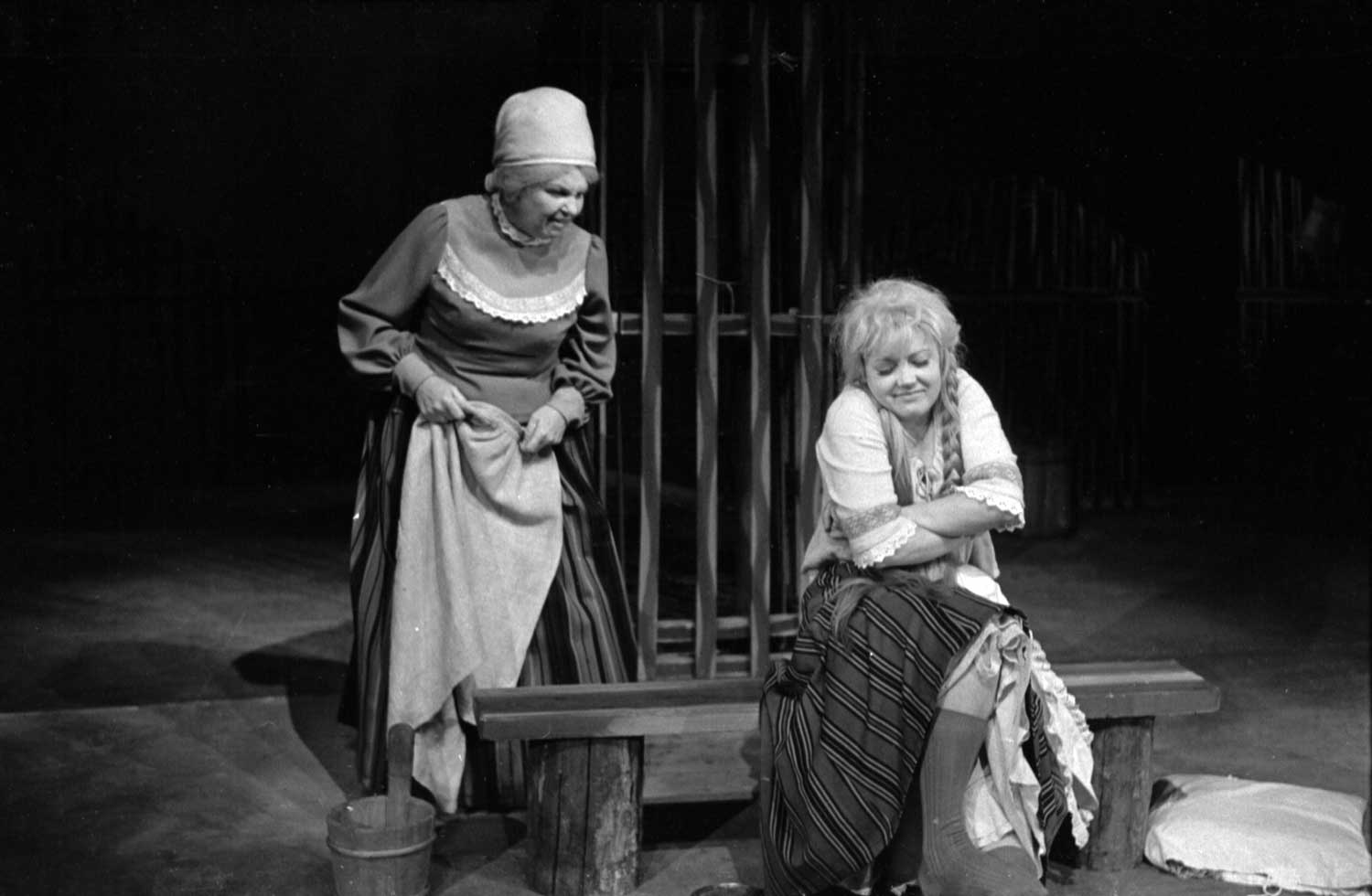 No kreisās: Vilma Lasmane Annes mātes lomā un Lilita Ozoliņa Annes lomā Rūdolfa Blaumaņa darba “Īsa pamācība mīlēšanā” iestudējumā. Dailes teātris, Rīga, 1973. gads.