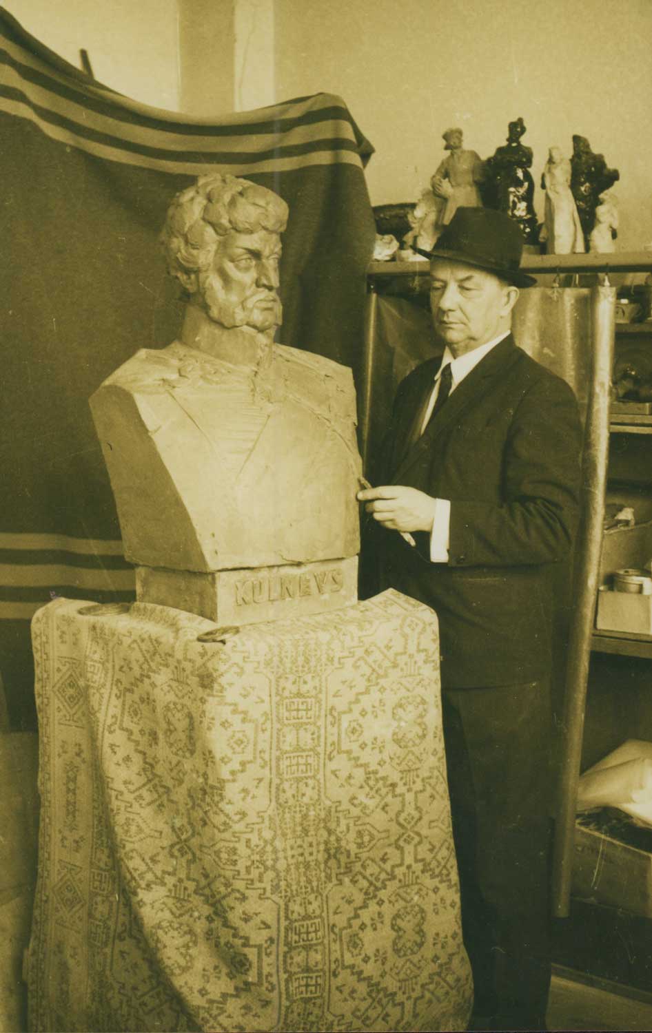 Leons Tomašickis veido Jakova Kuļņeva krūšutēlu. 1974. gads.