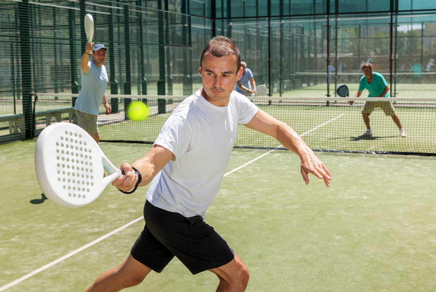 Padeltenisu galvenokārt spēlē iekštelpās, taču labā laikā laukumi ir izmantojami arī ārā, brīvā dabā, kas bieži tiek praktizēts vietās ar siltu klimatu. Raketes izgatavotas no dažādiem moderniem kompozītu materiāliem, tām nav stīgu. Raketes galviņā ir neierobežots skaits caurumiņu, kas ir diametrā no 9 līdz 13 milimetriem. Tas nodrošina mazāku gaisa pretplūsmu sitienu laikā. Vizuāli padeltenisa rakete vairāk atgādina lielāka izmēra galda tenisa raketi. Sienu augstums ap laukumu 4 metri. Sienas parasti no stikla, amatieru spēlēs var būt ķieģeļu sienas, āra laukumos ‒ arī parasts žogs.