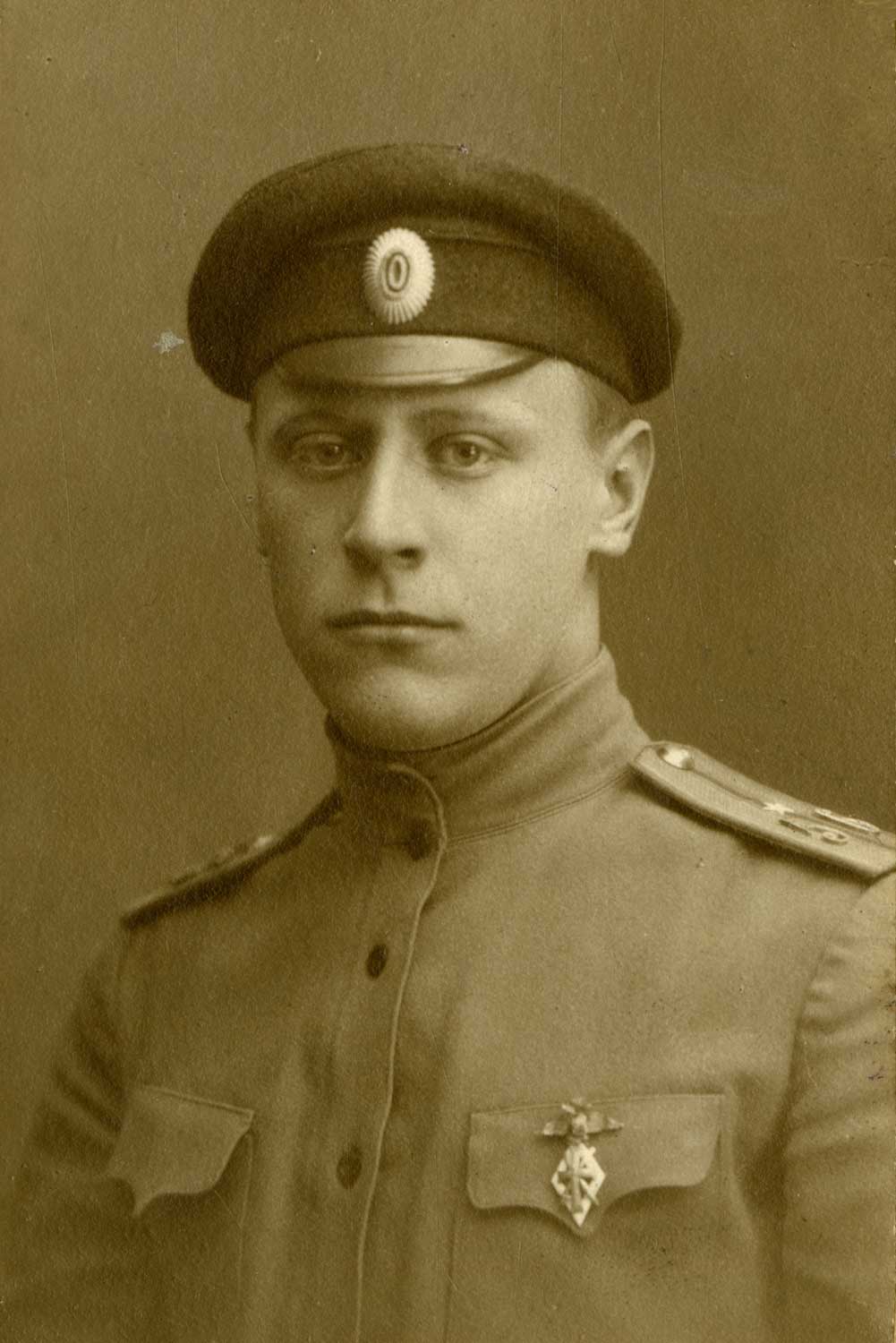 Studentu mobilizācijas gaitā 05.06.1916. Maskavā iesaukts Krievijas armijā. Pēc 3. Maskavas kājnieku praporščiku sagatavošanas skolas beigšanas 10.1916. kā virsnieks (praporščiks) iedalīts 56. kājnieku rezerves pulkā Maskavā, taču atstāts piekomandējumā skolai kā kursa virsnieka palīgs. 21.07.1917. atkomandēts uz 56. kājnieku rezerves pulku, jaunākais virsnieks. 23.07. pārvietots uz 17. kājnieku rezerves pulku Kijivā, jaunākais virsnieks. 27.09.1917. pārvietots uz latviešu strēlnieku pulkiem, pēc atvaļinājuma 02.11.1917. ieradās un iedalīts Rezerves latviešu strēlnieku pulkā Vidzemē, 15. rotas, no 22.01.1918. – sakaru mācību komandas jaunākais virsnieks. Podporučiks (30.12.1917.; Latvijas armijā pēc 07.11.1917. piešķirtās pakāpes netika atzītas, taču šajā gadījumā tika pieļauts izņēmums, balstoties uz dienesta biedru pretrunīgajām liecībām). Pēc vācu karaspēka ienākšanas 25.02.1918. atvaļināts un atlaists mājās, vācu okupācijas laikā dzīvoja Rīgā. Rudenī turpināja studijas BTA Rīgā.
