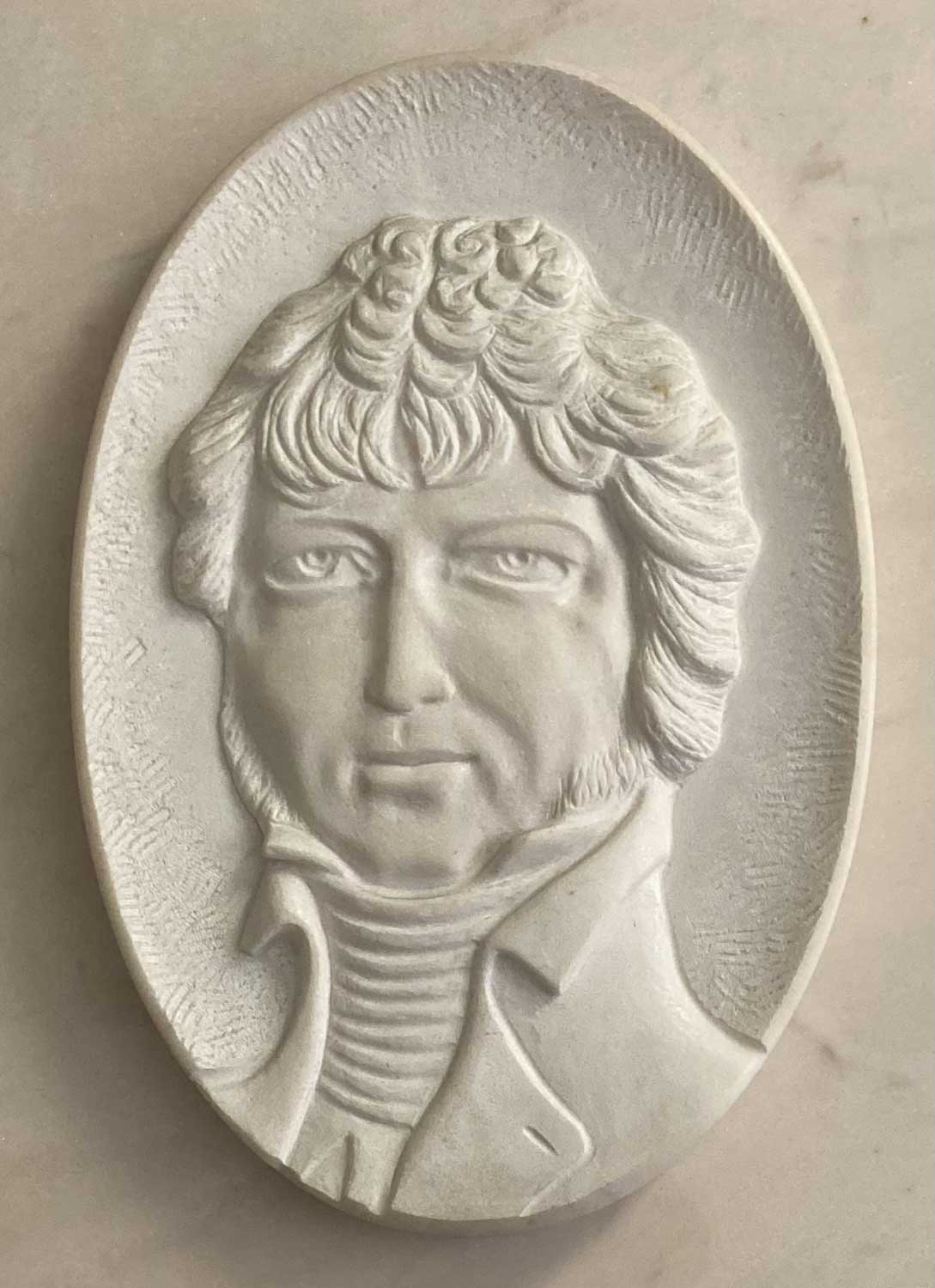 Kristofa Hāberlanda piemiņas portrets līdzās K. Hāberlanda projektētajai Kolonnu zālei. Cilnis. Rīga, 03.10.2025.