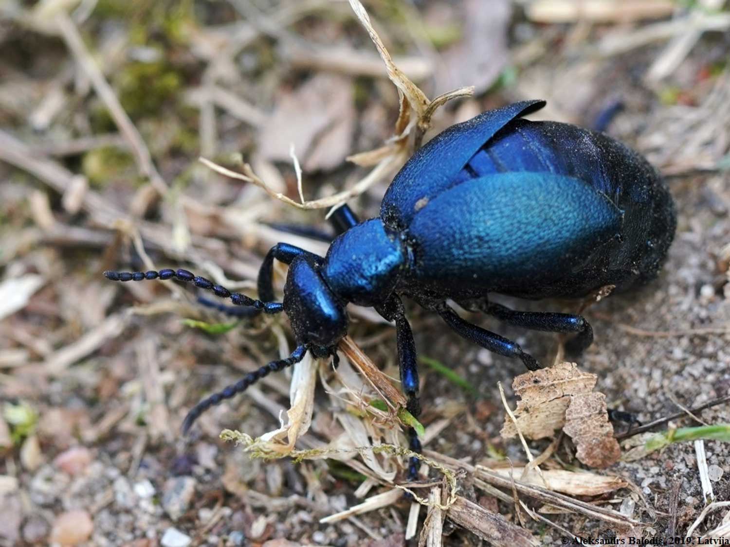 Zilās eļļasvaboles Meloe violaceus mātīte. 27.04.2019.