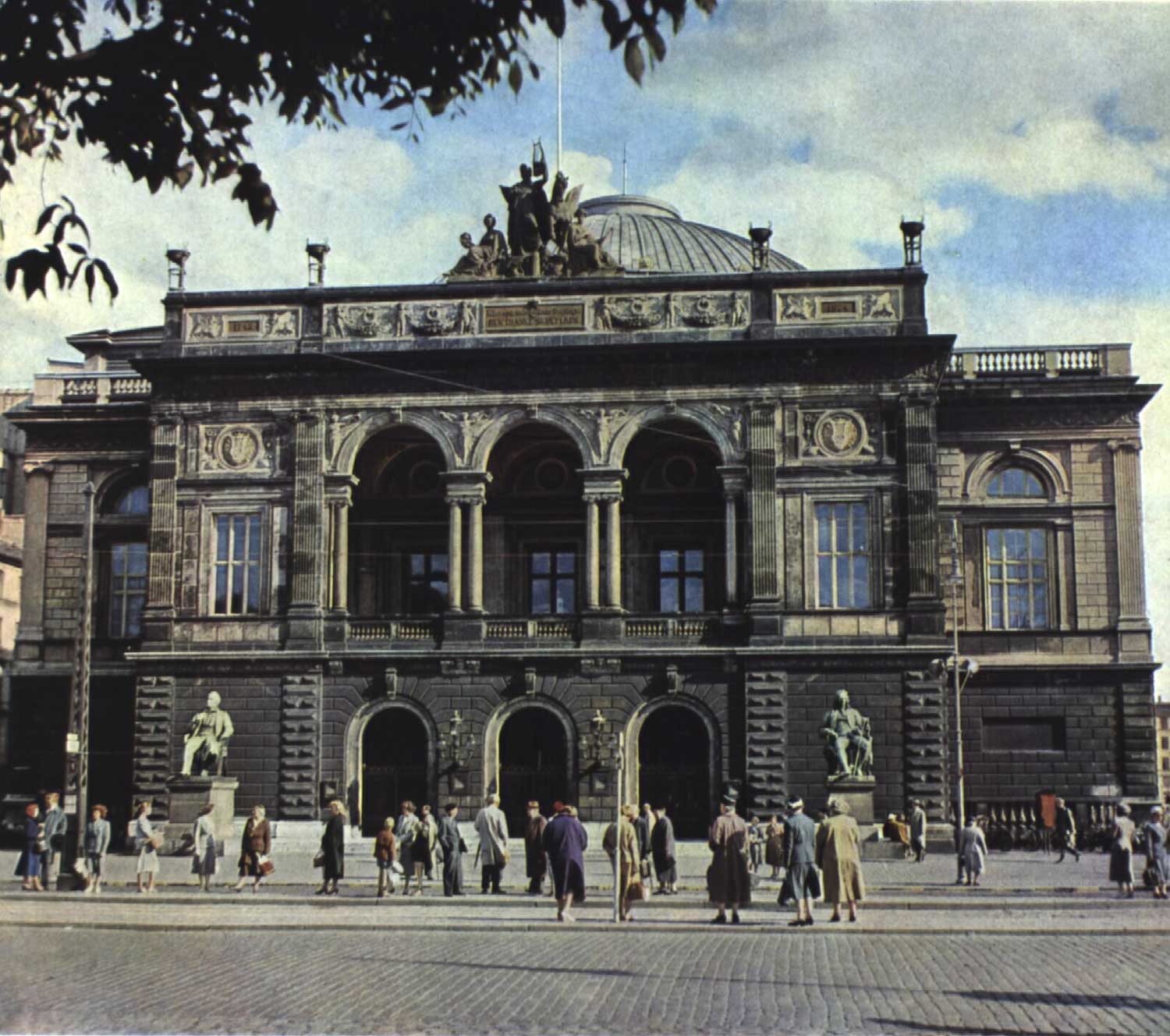 Karaliskā teātra ēkas Vecā skatuve. Zviedrijas karaliskā pāra valsts vizīte Dānijā. Kopenhāgena, 03.1952.