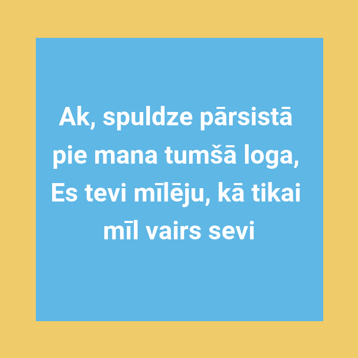 Es tevi mīlēju, kā tikai mīl vairs sevi – rāda skumju intonāciju.”