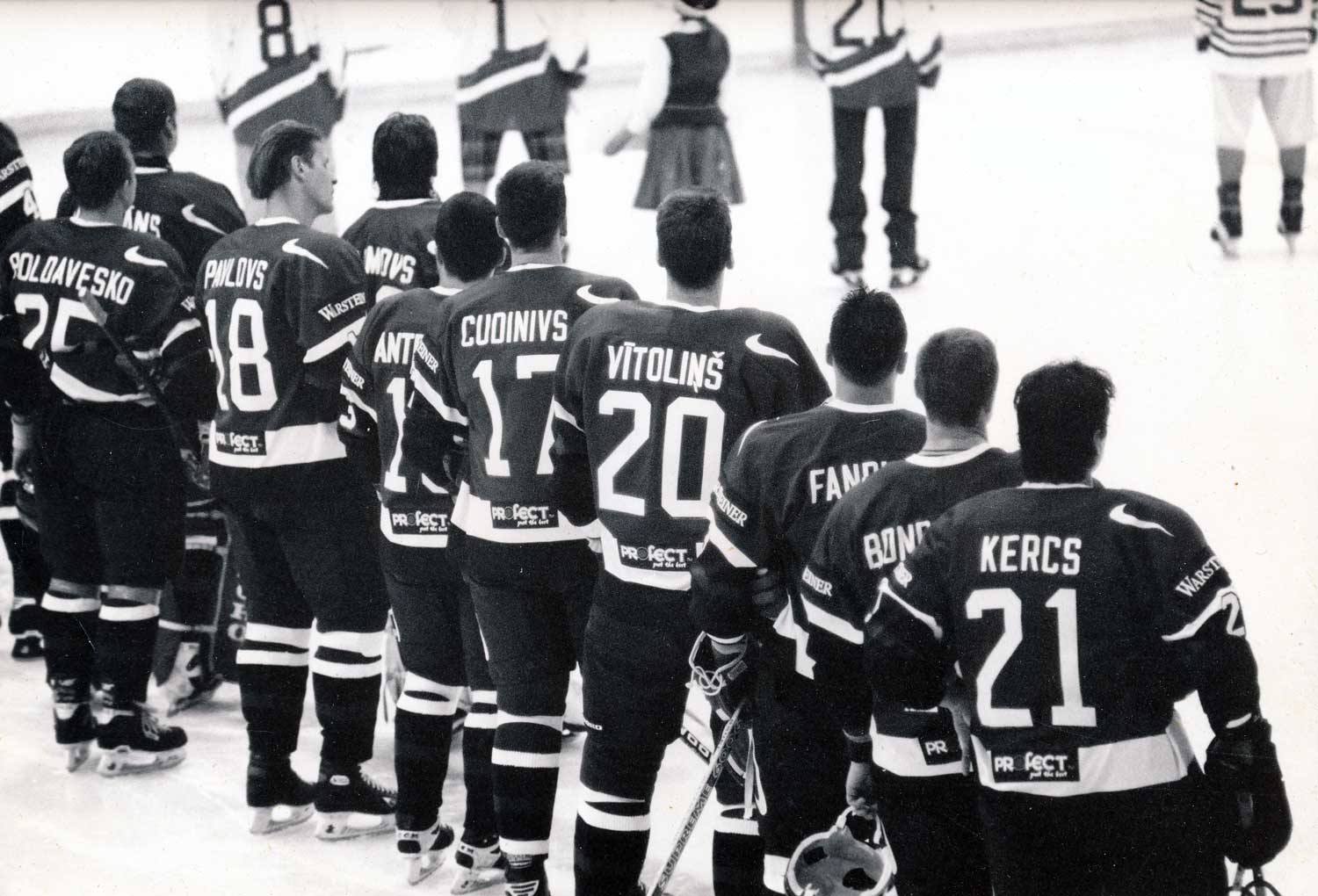 Latvijas vīriešu hokeja izlase pēc neatkarības atjaunošanas pirmo spēli aizvadīja 07.11.1992. Rīgā pret Lietuvas izlasi (uzvara 13:2). Pēc atgriešanās starptautiskajā apritē Latvijas vīriešu hokeja izlase ir piedalījusies piecos ziemas olimpisko spēļu turnīros (2002, 2006, 2010, 2014, 2022). Kopš 1993. gada Latvijas izlase startē ikgadējos pasaules čempionātos – trešajā līmenī 1993. gadā, otrajā līmenī 1994.–1996. gadā, augstākajā līmenī kopš 1997. gada. Latvijas vīriešu hokeja izlase aizvada spēles arī dažādu citu turnīru ietvaros, kā arī draudzības (pārbaudes) sacīkstes ārpus turnīriem. No 1992. gada līdz šim Latvijas vīriešu hokeja izlase ir aizvadījusi 510 valstsacīkstes – spēles pret citu valstu izlasēm. Starp šīm spēlēm ir arī daži izņēmumi – pretiniekos bijusi kādas valsts izlase, kas nav attiecīgās valsts pirmā izlase, bet nomināli otrā izlase vai valsti pārstāvējusi kluba komanda.