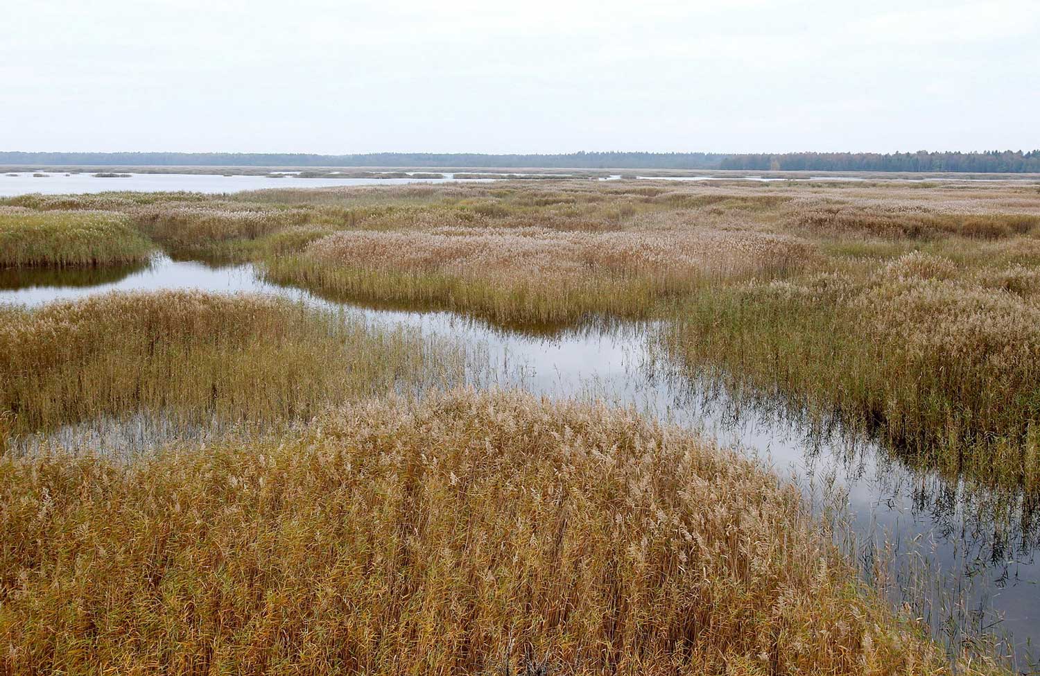 Ezera krasti ir zemi un galvenokārt pārpurvojušies, izņemot austrumu krastu, kas ir stingrs un pieejams. Krasta līniju izrobo līči un purvainas pussalas. Ezerdobe ir samērā līdzena, tās pamatni austrumdaļā veido dolomīti, kas klāti ar plānāku vai biezāku dūņu slāni, bet pārējā teritorijā ezera gultnē virs dolomītiem ieguļ plāns morēnas slānis. Ezerā ir 14 salas (Krievu sala, Vārsala, Andra sala, Mērsala, Pakavsala u. c.) ar kopējo platību – 15,9 ha, tai skaitā piecas mākslīgi veidotas salas, lai veicinātu ūdensputnu ligzdošanu.