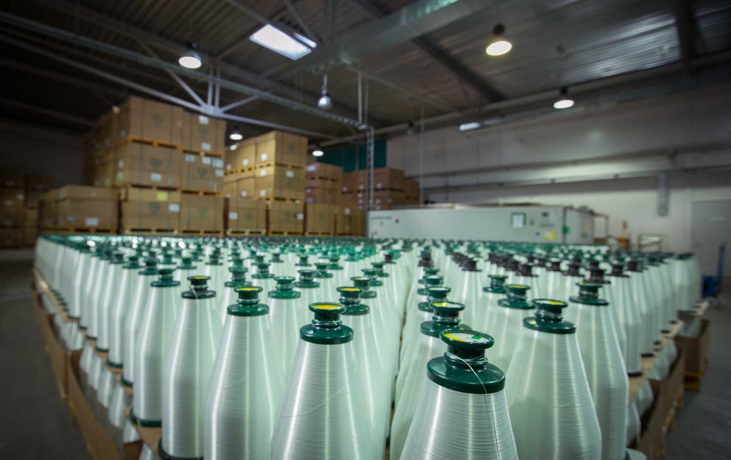 A/s “Valmieras Stikla šķiedra” gatavā produkcija (stikla šķiedras spolētais diegs). Valmiera, 2013. gads.