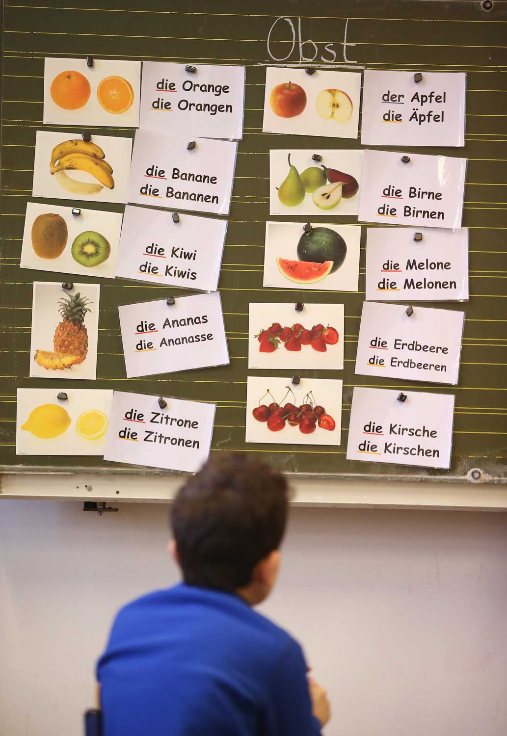Fonēmu atspoguļošanai rakstībā tiek izmantoti latīņu alfabētā balstīti deviņu patskaņu burti (a, e, i, y, o, u, ä, ö, ü) un 20 līdzskaņu burti (b, c, d, f, g, h, j, k, l, m, n, p, q, r, s, ß, v, w, x, z) un to kombinācijas (piemēram, sch [ʃ], ng [ŋ]). Vācu valodas ortogrāfijā galvenokārt tiek izmantots morfoloģiskais princips, arī fonētiskais princips, taču daļēji saglabāts arī vēsturiskais pieraksts un līdz ar to, piemēram, vairāki atšķirīgi patskaņa garuma marķējumi. Lietvārdus marķē ar lielajiem sākuma burtiem.